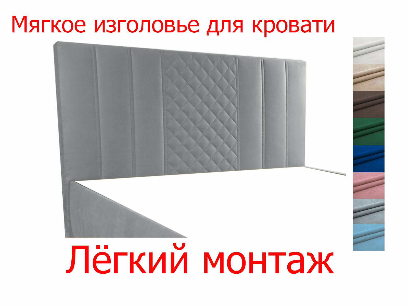 Мягкое изголовье Ekatmeb Квадра для кровати, 150х110, велюр серый: сравнение цен, характеристики, фото, актуальное наличие и цены.