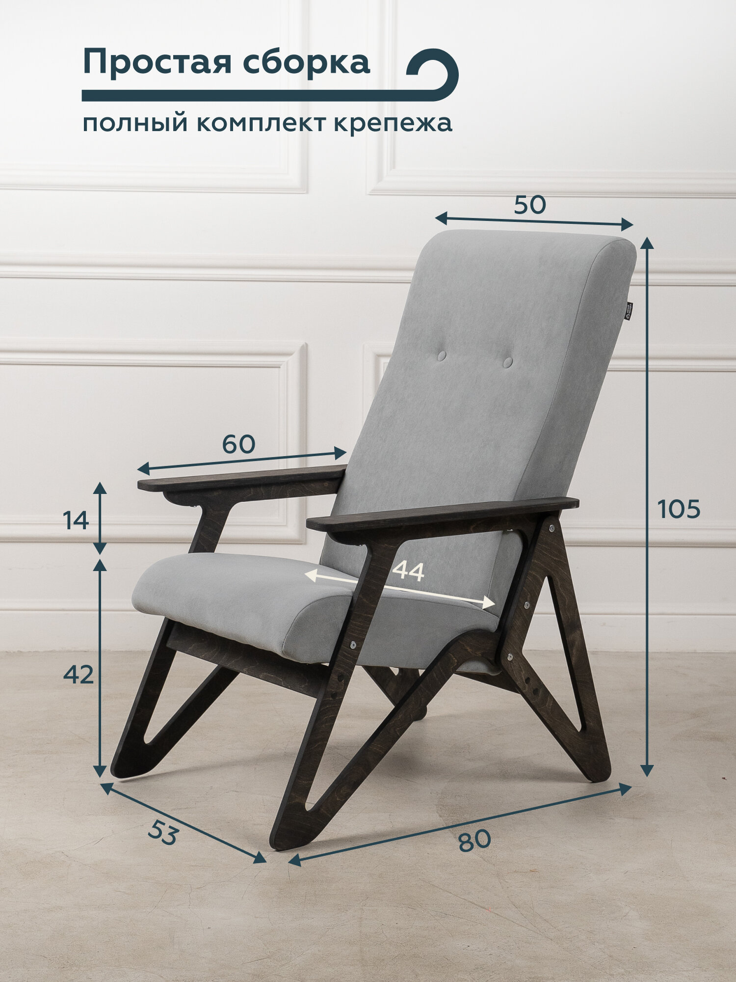 Кресло для отдыха "Геометрия" от "Мягкой Посадки" - это сочетание комфорта, стиля и функциональности. Обивка из серого велюра придает креслу изысканный вид, а необычные геометричные подлокотники добавляют ретро-нотку.
