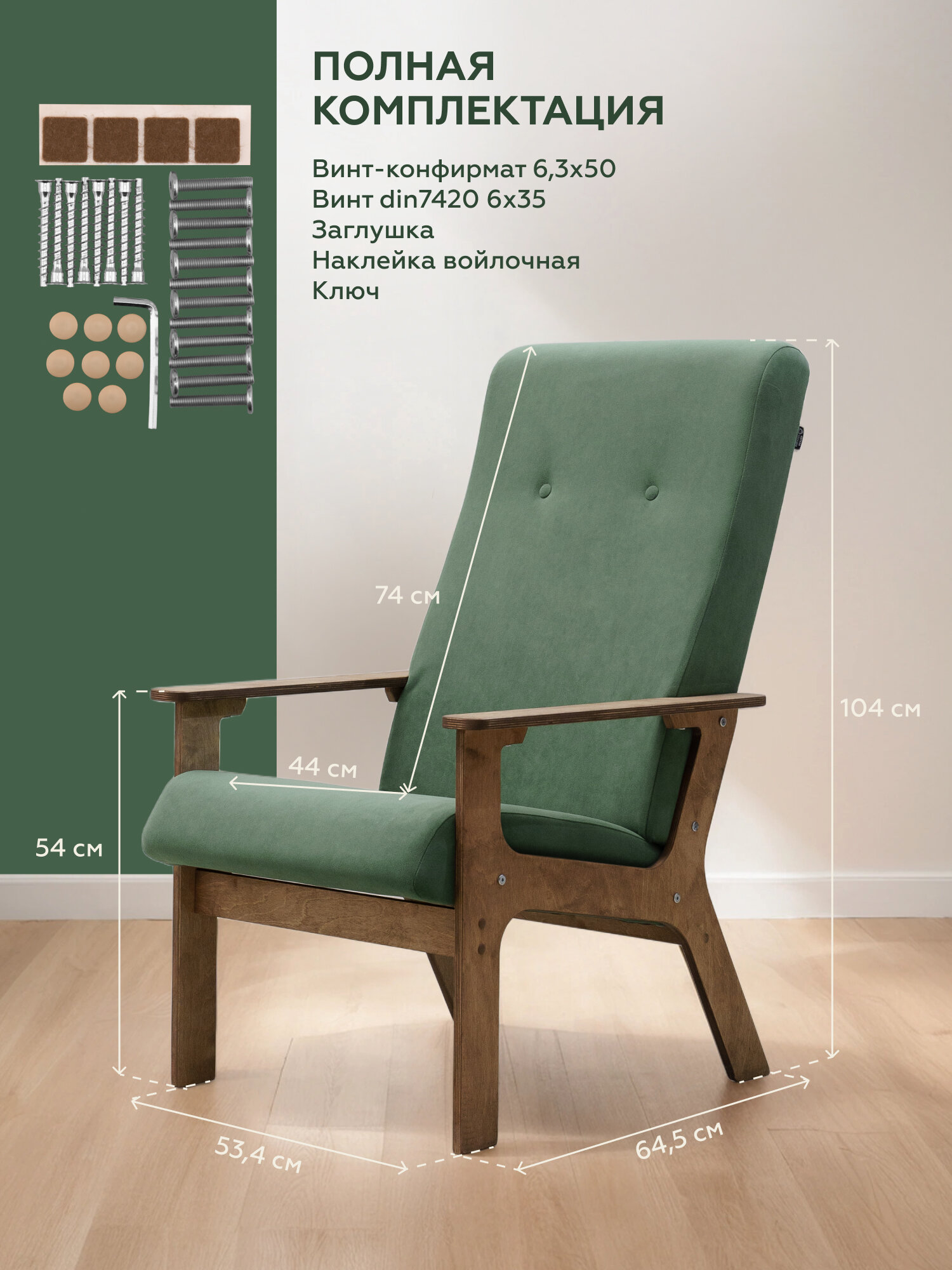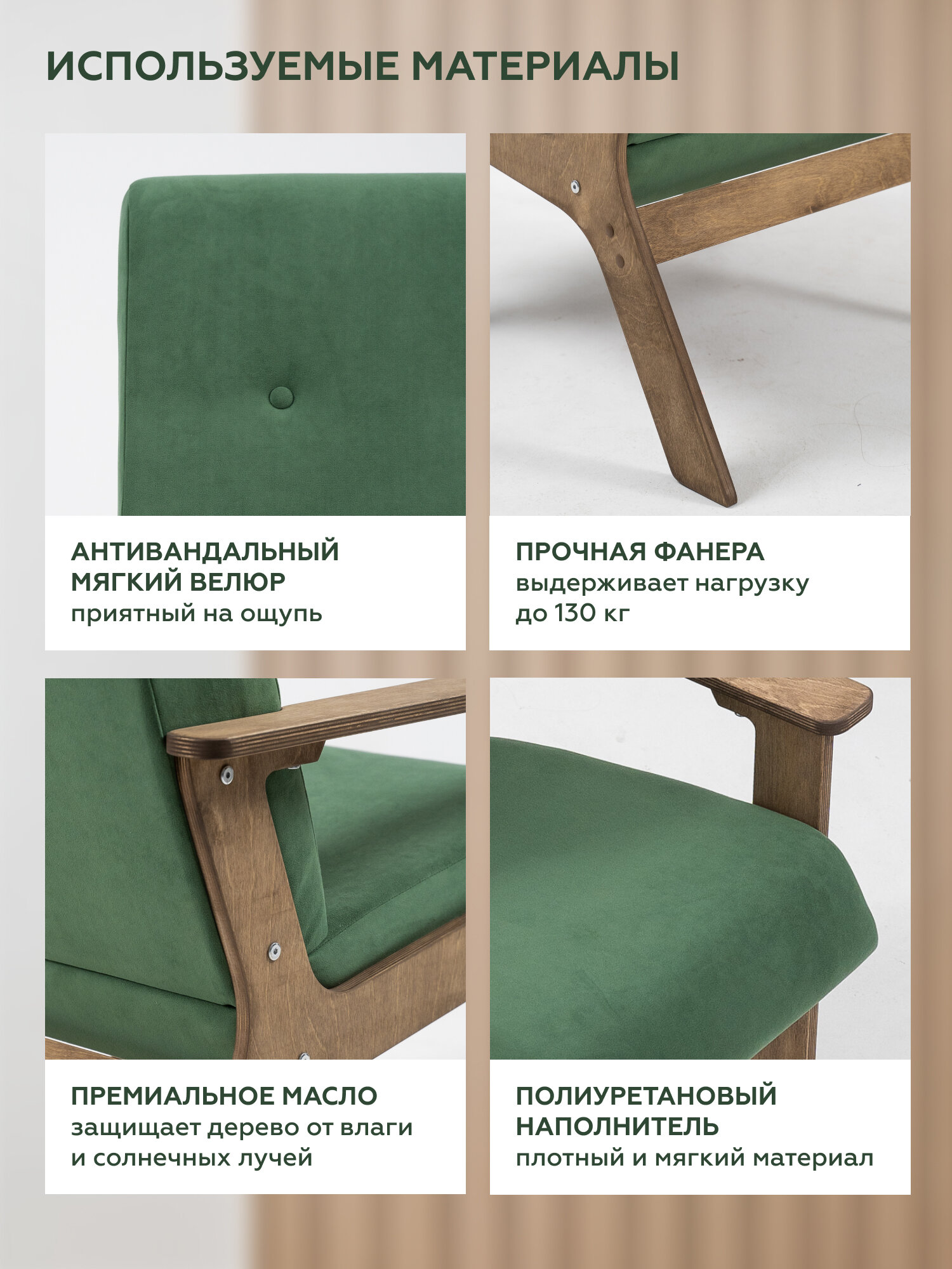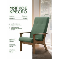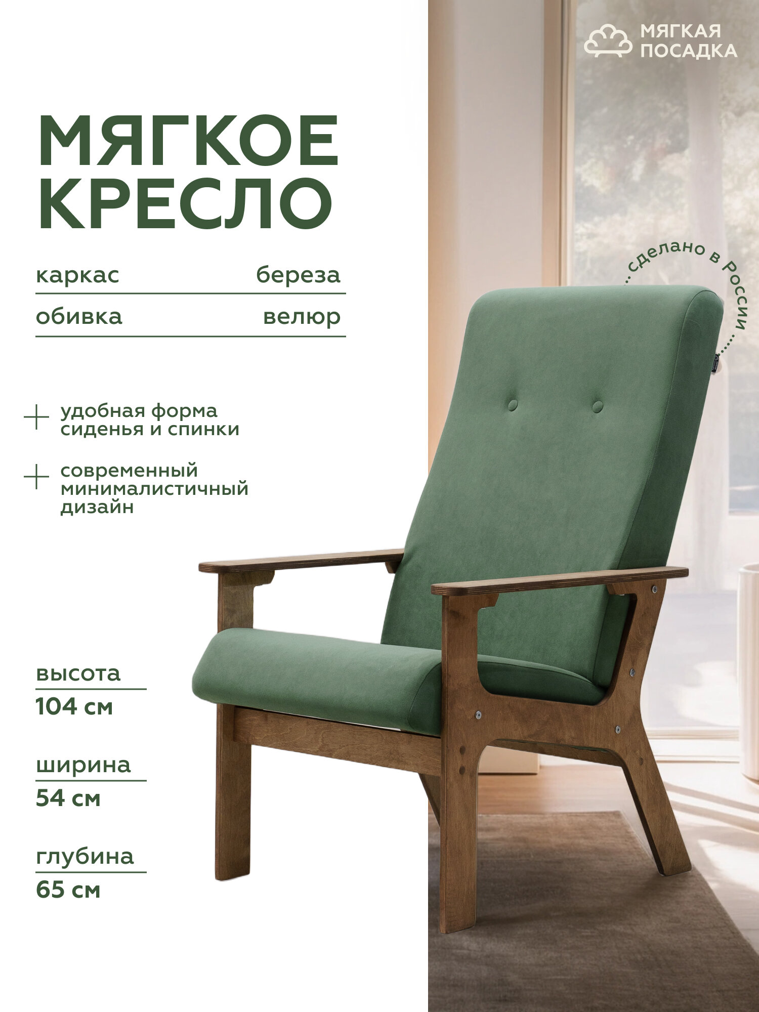 Кресло для отдыха «ретро» от «Мягкой посадки» с высокой спинкой, обивка зеленый велюр: сравнение цен, характеристики, фото, актуальное наличие и цены.