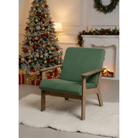 Кресло выполнено из качественного зеленого велюра, который обеспечивает комфорт и долговечность. Велюр также обладает приятной на ощупь текстурой и легко чистится.