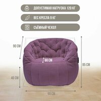 Бескаркасное мягкое кресло с оттоманкой aLounge - Butterfly Sofa Deluxe - Sakura Pink (велюр, фиолетовый) - лаунж мебель в гостиную, спальню, детскую, офис, на балкон