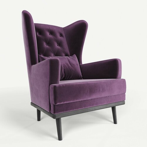 Мягкое кресло с ушами Фантазёр LUXE-11 (Фиолетовый 10) с каретной стяжкой, на высоких ножках, для отдыха и чтения книг. В гостиную, балкон, спальню и переговорную комнату.