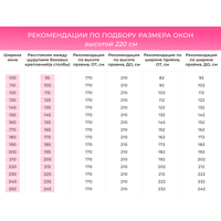окна высотой 120, 160, 220, 240 и 280 см; шириной от 100 до 250 см.