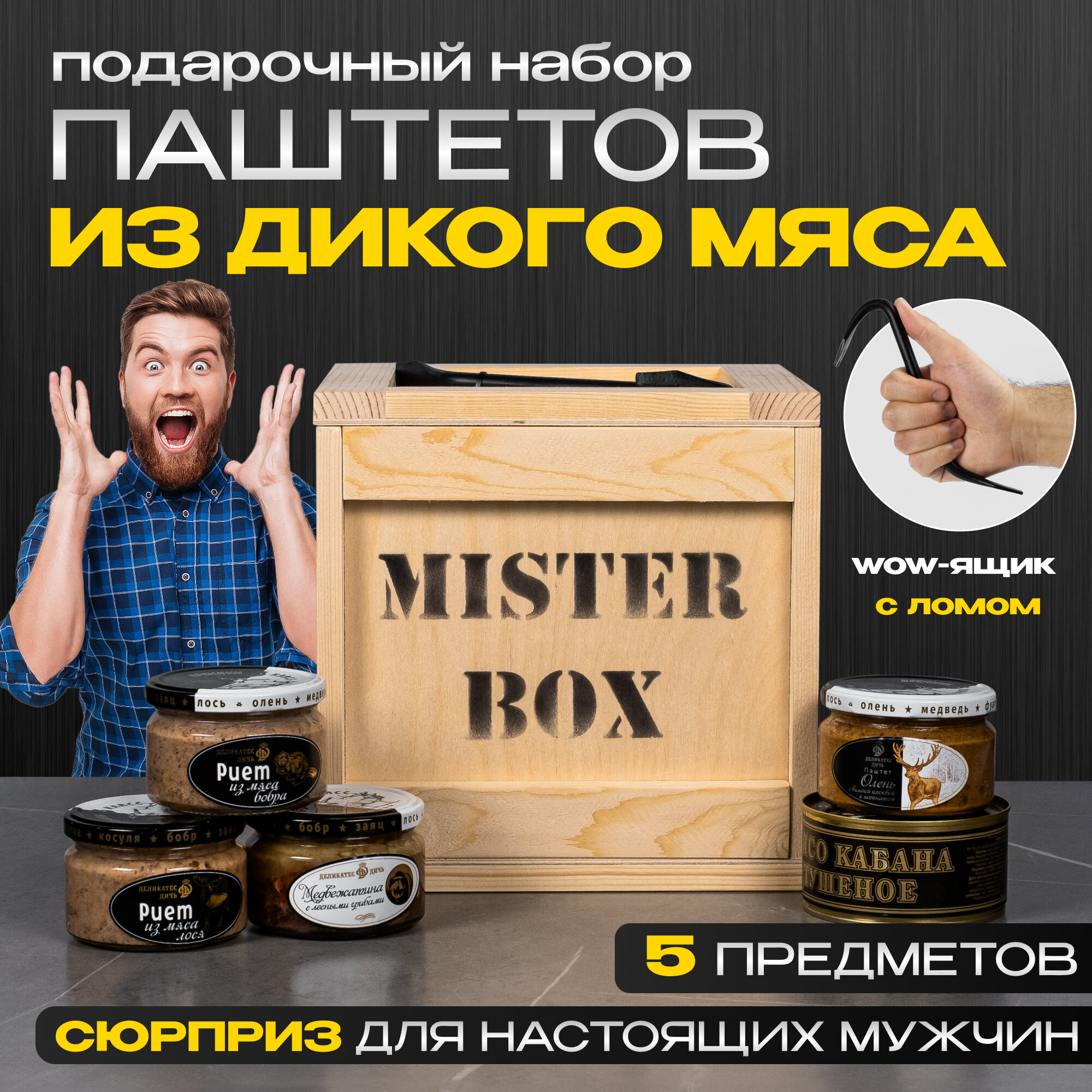 | В наборе | Индейка с куркумой 20 гр. Говядина оригинальная 20 гр. Оленьи ломтики, 20 гр. Страусиные ломтики, 20 гр. Гусиные ломтики, 20 гр. Конина с чесноком и кориандром 20гр Паштет из Гусиной печени Фуагра 200г Мясо кабана тушеное 325г Мясо лося тушеное 325г Подарочная картонная коробка MISTER BOX |