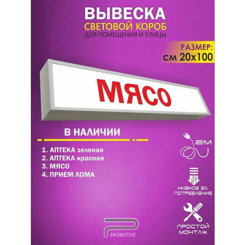 Мясо световой короб, светодиодная вывеска 1000Х200 мм: сравнение цен, характеристики, фото, актуальное наличие и цены.