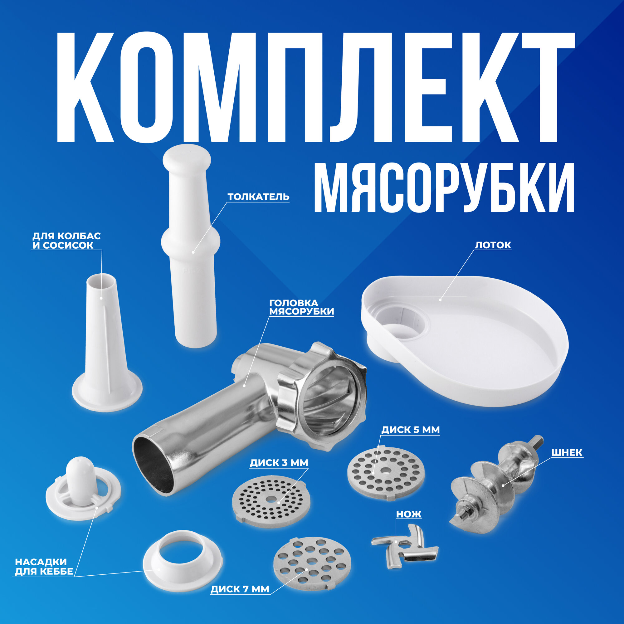 | Насадки | диск для фарша, насадка для кеббе, насадка для приготовления колбас, насадка для шинковки, насадка-терка |