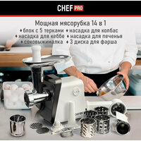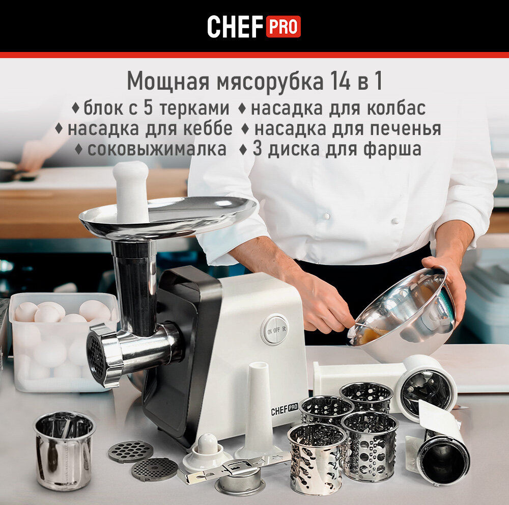 Купить Мясорубка CHEF PRO CF-MG1450D белый/матовый никель с доставкой по всей России. Мясорубка CHEF PRO CF-MG1450D белый/матовый никель: сравнение цен, характеристики, фото, актуальное наличие и цены.