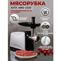 Купить Мясорубка электрическая ASTIX AMG-2320 , 2000 Вт, с реверсом, насадка для приготовления колбас, насадка для кеббе с доставкой по всей России.