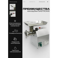 Время работы без перерыва не более 10 минут. Перед дальнейшим использованием прибору необходимо остыть в течение 15 минут. Профессиональная мясорубка от официального дилера бренда GASTROMIX на территории России и стран СНГ, гарантия производителя 6 месяцев.