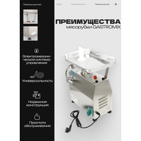 Время работы без перерыва не более 15 минут. Перед дальнейшим использованием прибору необходимо остыть в течение 5 минут. Профессиональная мясорубка от официального дилера бренда GASTROMIX на территории России и стран СНГ, гарантия производителя 6 месяцев.