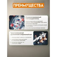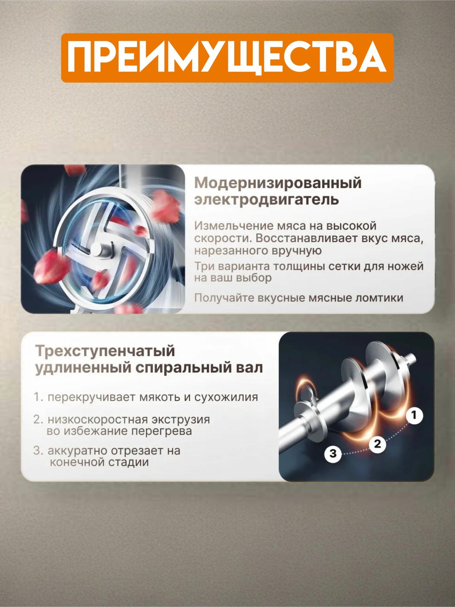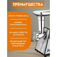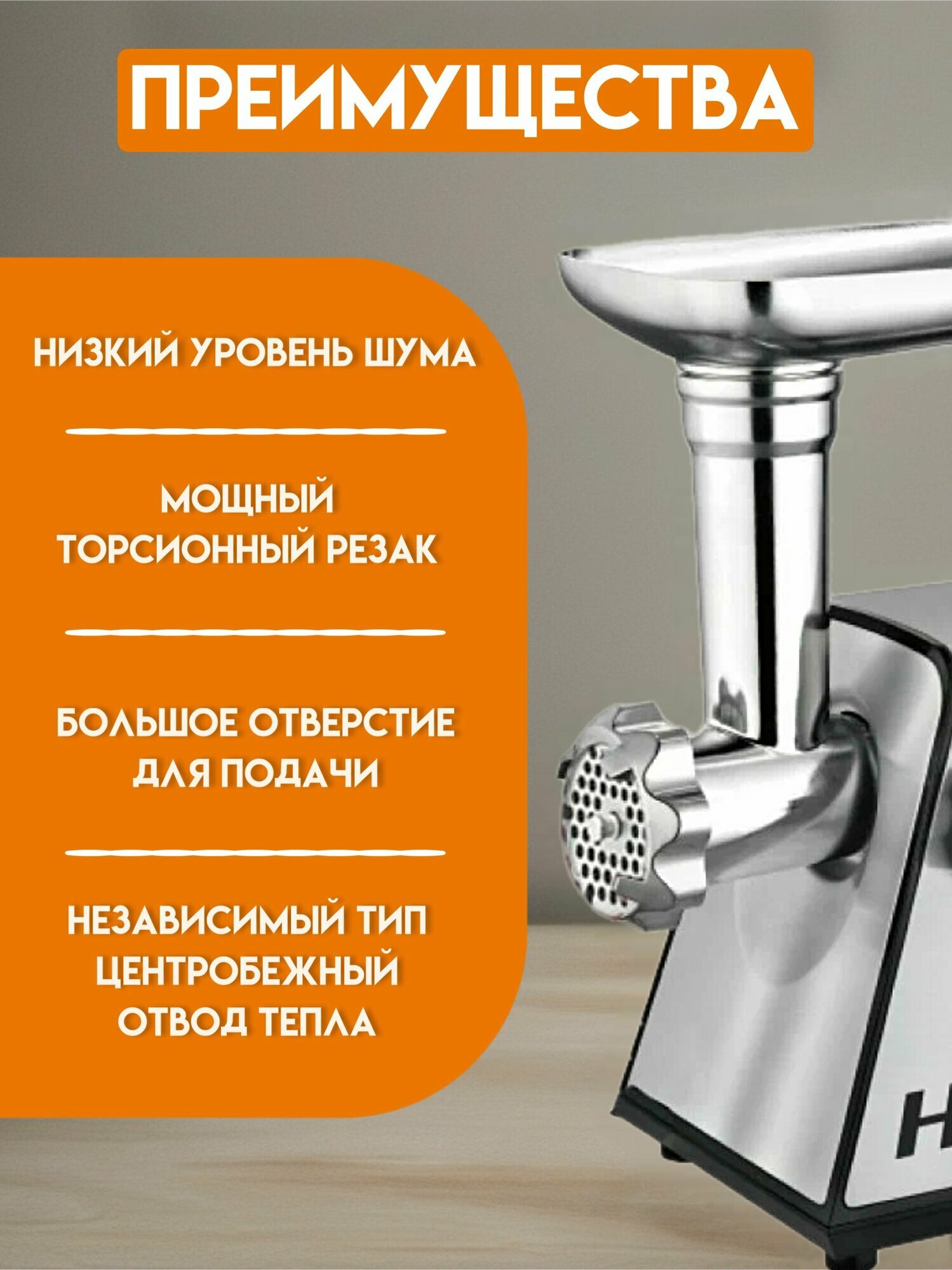 | Дополнительная информация | для фарша, колбас, кеббе + решётки с отверстиями 3 мм, 5 мм и 7 мм |