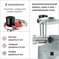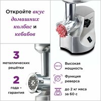 | Насадки | диск для фарша, насадка для кеббе, насадка для приготовления колбас |