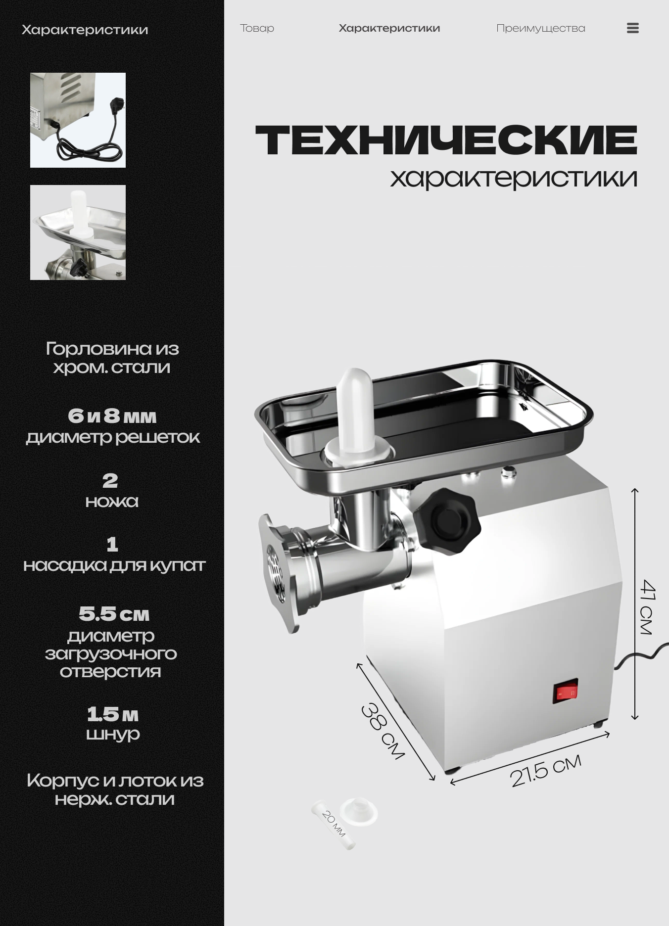 Высокая производительность при мощности 850 Вт, тихая работа и качественная сборка делают мясорубку незаменимым помощником в пищевой промышленности.