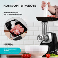 Высокая мощность в 1500 Вт и надежность материалов обеспечивают быстрое и качественное измельчение любого мяса без предварительной обвалки.