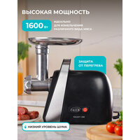 Номинальная мощность мясорубки составляет 1600 Вт, а максимальная - 1600 Вт. Длина сетевого шнура - 1 метр.