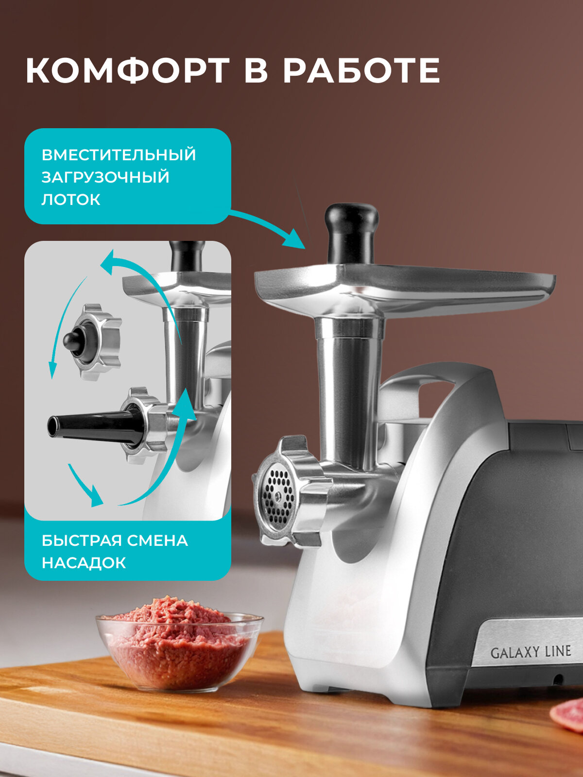Мясорубка электрическая Galaxy LINE GL2422, защита от перегрузки: сравнение цен, характеристики, фото, актуальное наличие и цены.