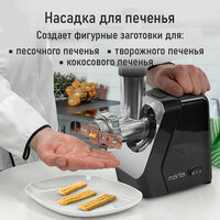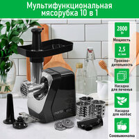 | Насадки | диск для фарша, насадка для кеббе, насадка для нарезки печенья, насадка для приготовления колбас, насадка для шинковки, насадка-терка, соковыжималка |