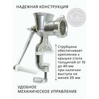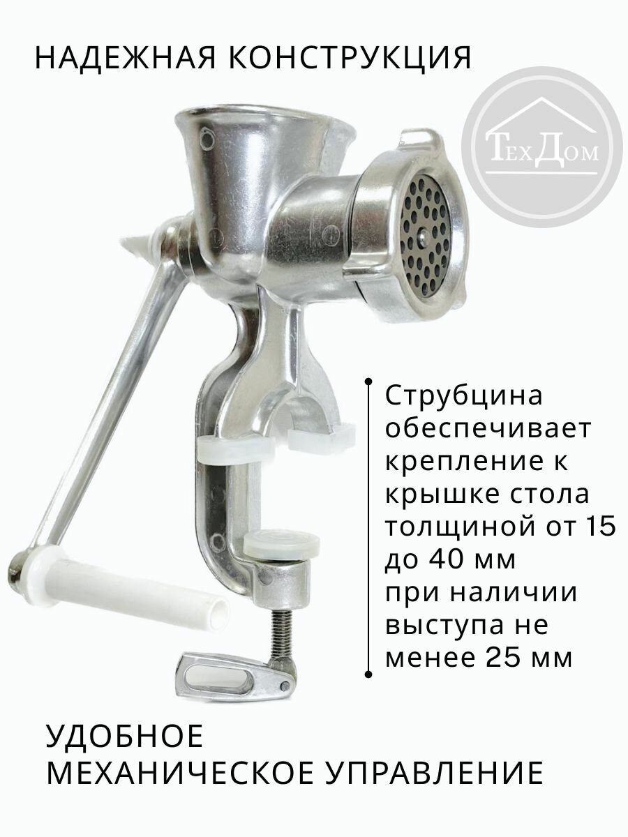Осуществляйте правильную сборку ручной мясорубки! Также после промывки мясорубки обязательно протирайте нож и решетку насухо. Мясорубку храните в сухом месте. Мясорубка - алюминиевая, поэтому ее нельзя мыть в посудомойке. Мясорубка механическая (ручная) Мясорубка бытовая с ручным приводом предназначена для приготовления мясного и рыбного фарша. Мясорубка выполнена из экологически чистого, прочного алюминия, благодаря этому имеет небольшой вес. Мясорубка произведена по госту 4025-95.