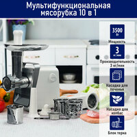 | Насадки | диск для фарша, насадка для кеббе, насадка для нарезки печенья, насадка для приготовления колбас, насадка для шинковки, насадка-терка |