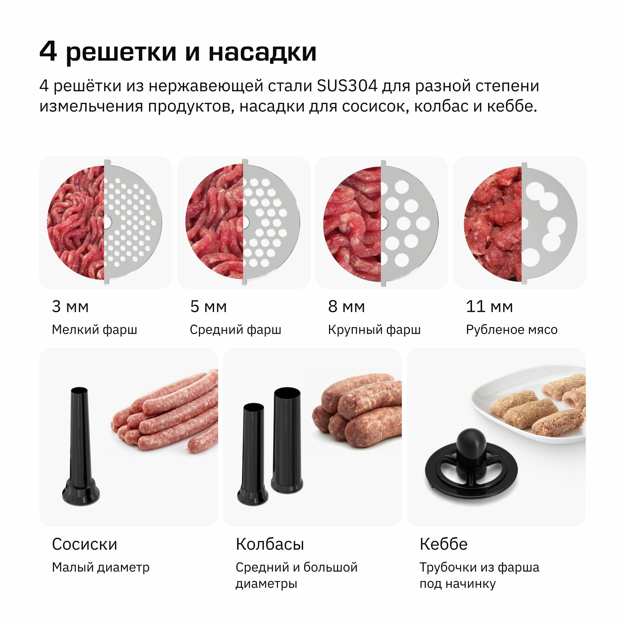| Насадки | диск для фарша, насадка для кеббе |