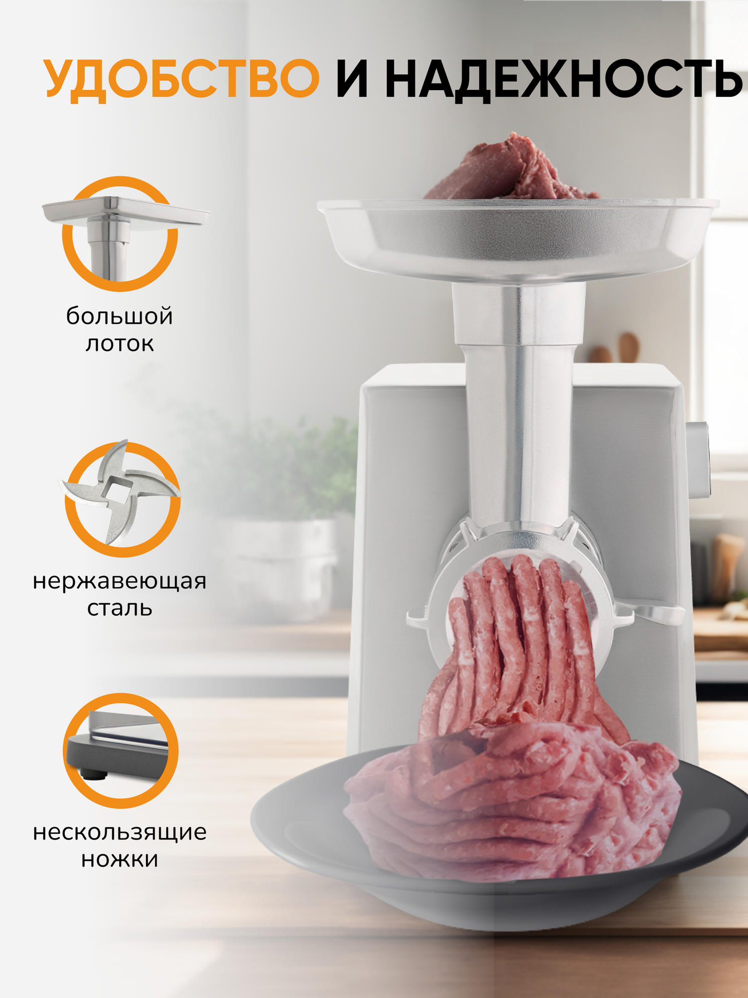 | Дополнительная информация | 3 режущих диска для разных степеней помола фарша |