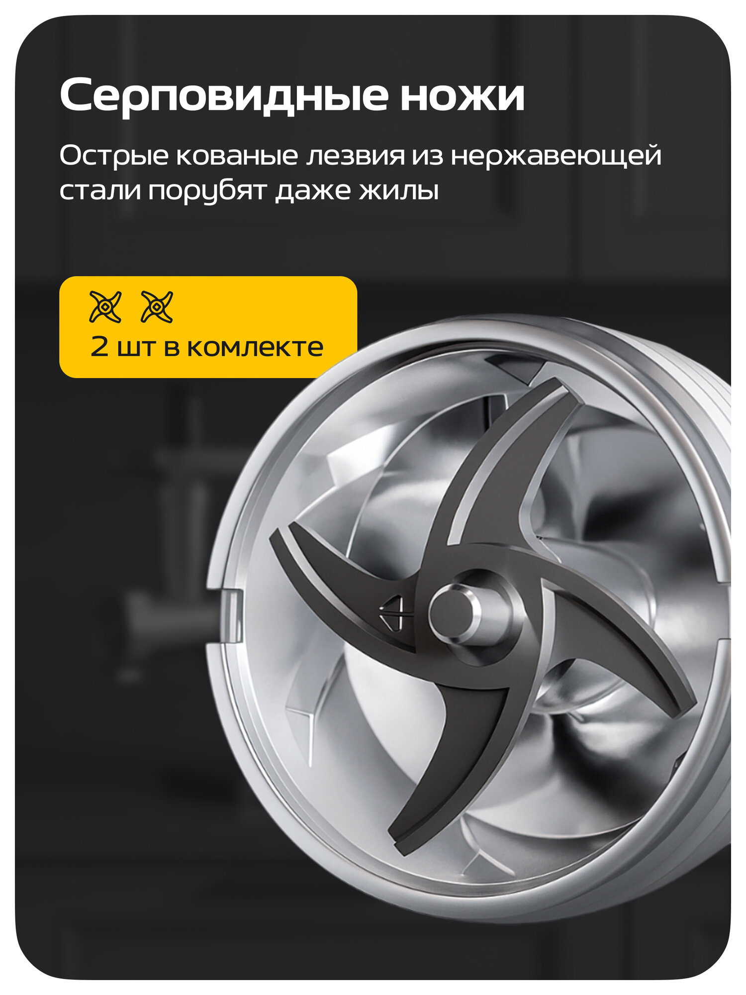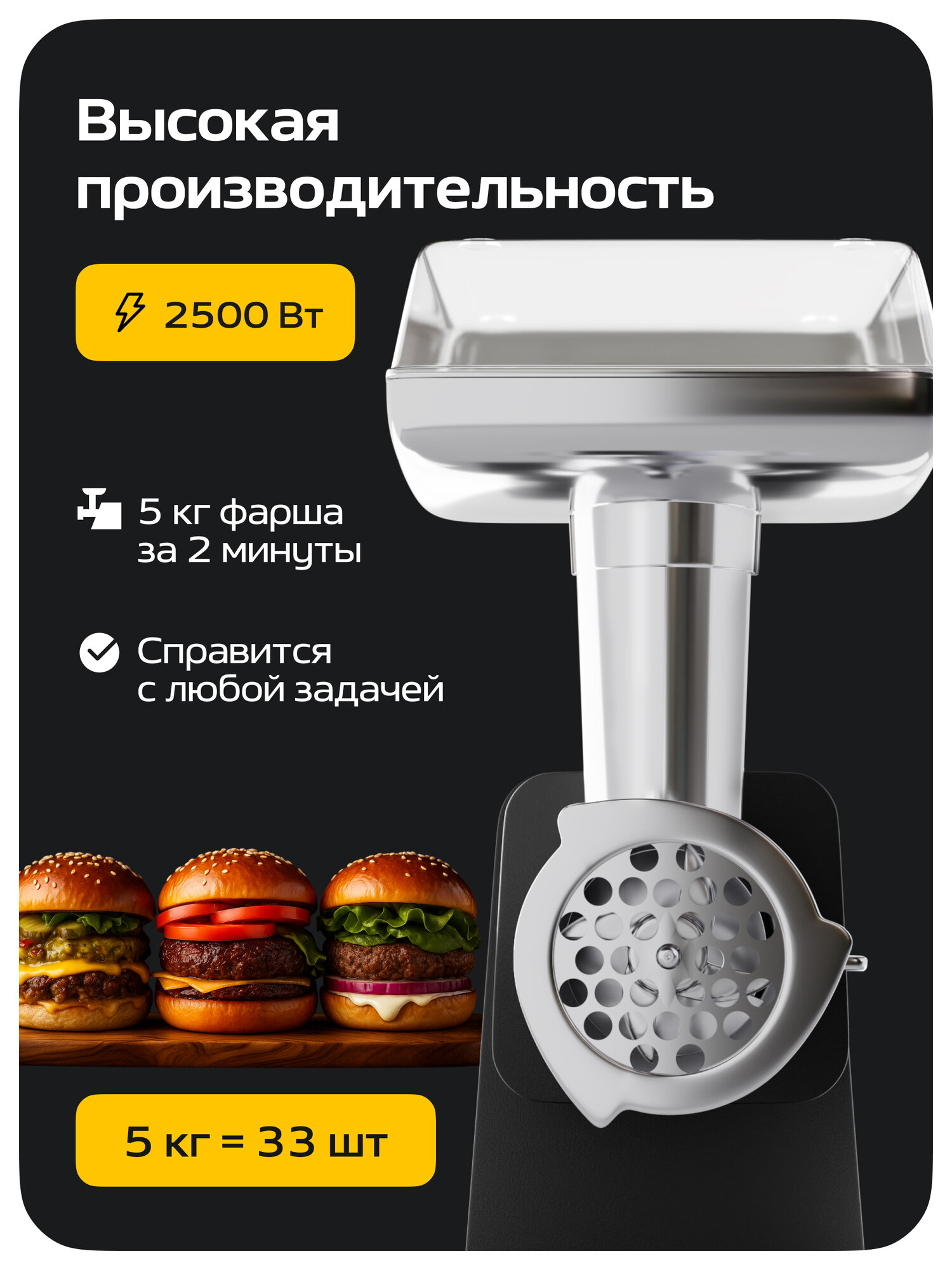 | Насадки | диск для фарша, насадка для кеббе, насадка для приготовления колбас |