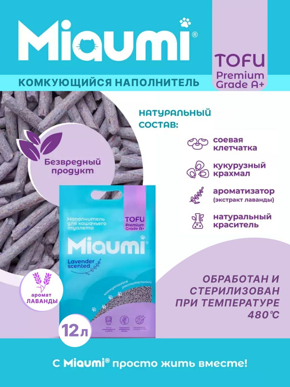 Мяуми Miaumi TOFU Lavender Scented комкующийся наполнитель для кошачьего туалета растительный/Тофу, с нежным ароматом лаванды 12л: сравнение цен, характеристики, фото, актуальное наличие и цены.