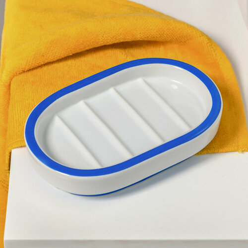 Мыльница для ванной на столешницу или раковину является частью коллекции Memphis, которая представлена в Likemyhome в полном составе. Изготовлена из керамики, имеет овальную форму. Цвет белый с синей окантовкой. Рельефное дно препятствует прилипанию мыла. С помощью коллекция Memphis можно комплексно оформить интерьер дома в авангардном стиле 80-х. Протирать с помощью мыльного раствора мягкой тряпкой. Не рекомендуется использовать абразивные и химически активные вещества для ухода за изделием. Не класть в морозильник, посудомоечную машину, микроволновую печь. Выпуклые части не дадут мылу прилипнуть Покрытие: глянцевая глазурь Печатный деколь