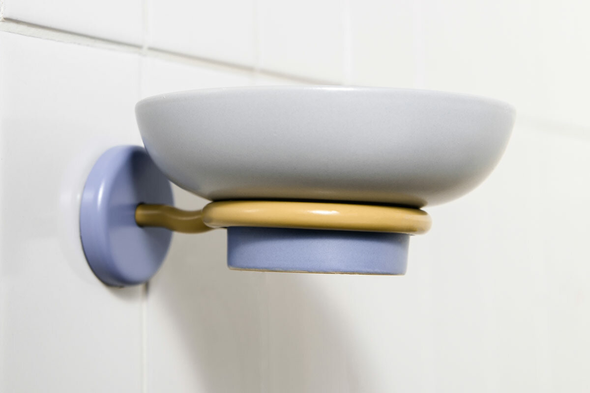 Настенная мыльница Antrim в спокойной палитре оттенков: песочном, голубом и светло-сером. Изделие надежно крепится с помощью саморезов, которые идут в комплекте. Плавные формы и умиротворяющая гамма предметов Antrim станут прекрасным дополнением в современных интерьерах. Протирать с помощью мыльного раствора мягкой тряпкой. Не рекомендуется использовать абразивные и химически активные вещества для ухода за изделием. Не класть в морозильник, посудомоечную машину, микроволновую печь. Тип крепления: на шурупы Крепления в комплекте Скрытое крепление Состав металла: сплав цинка Покрытие металла порошковой краской Покрытие: матовая глазурь Гравированный логотип на держателе