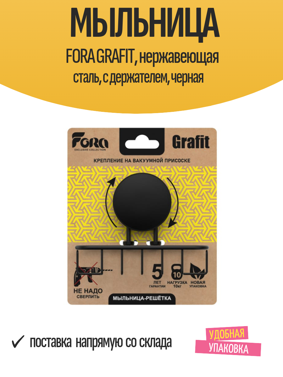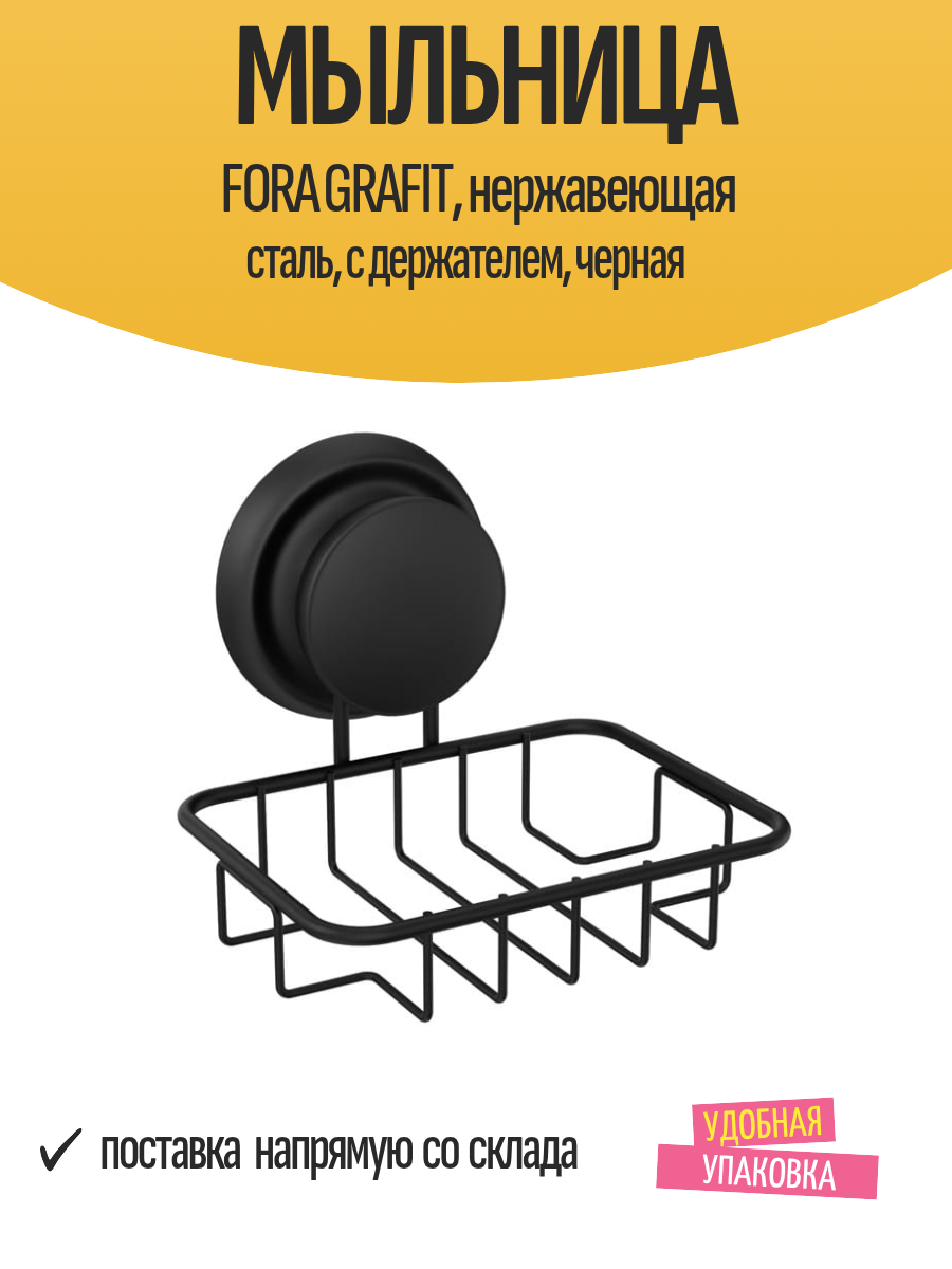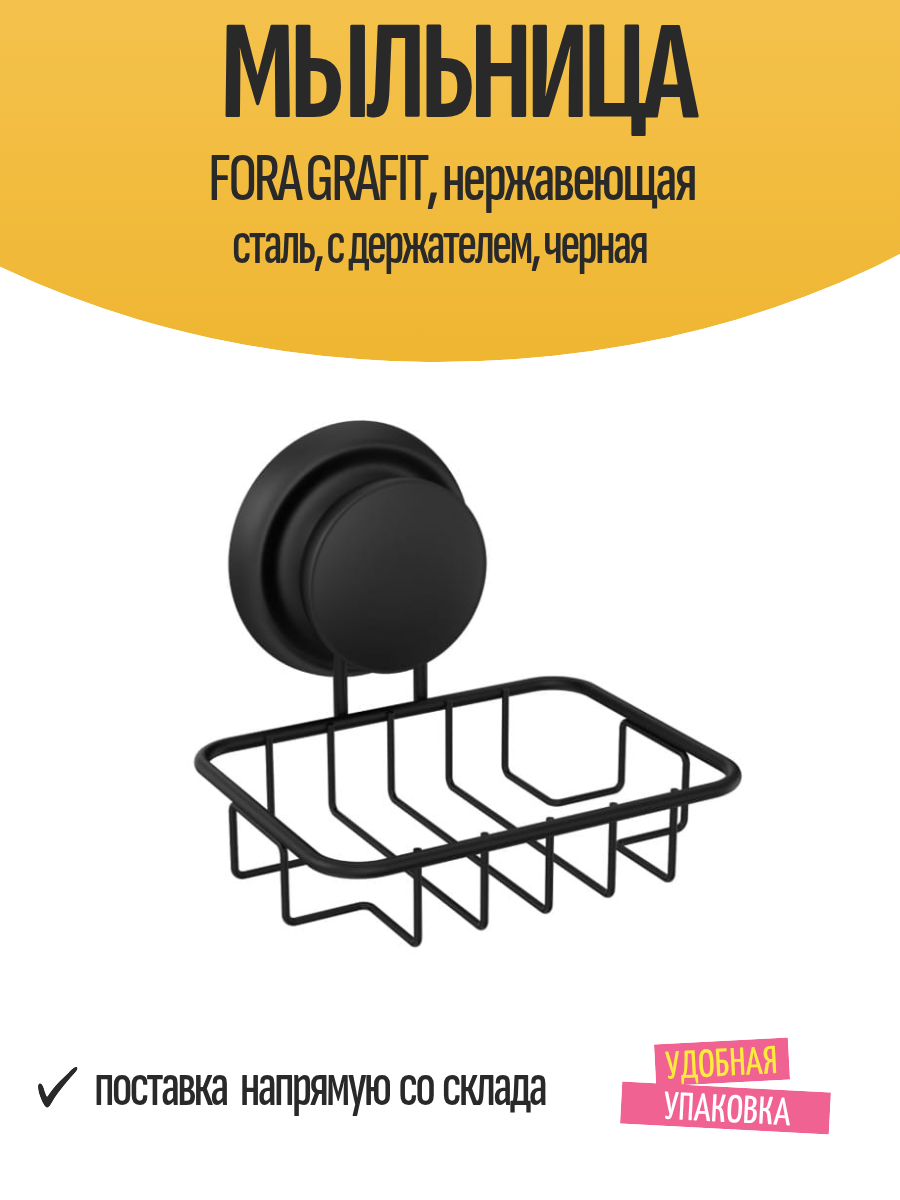 Купить Мыльница FORA GRAFIT, нержавеющая сталь, с держателем, черная с доставкой по всей России. Мыльница FORA GRAFIT, нержавеющая сталь, с держателем, черная: сравнение цен, характеристики, фото, актуальное наличие и цены.