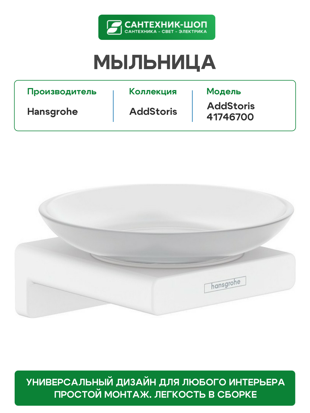 Купить Мыльница Hansgrohe AddStoris 41746700 Белая матовая керамика на стену с доставкой по всей России. Мыльница Hansgrohe AddStoris 41746700 Белая матовая керамика на стену: сравнение цен, характеристики, фото, актуальное наличие и цены.