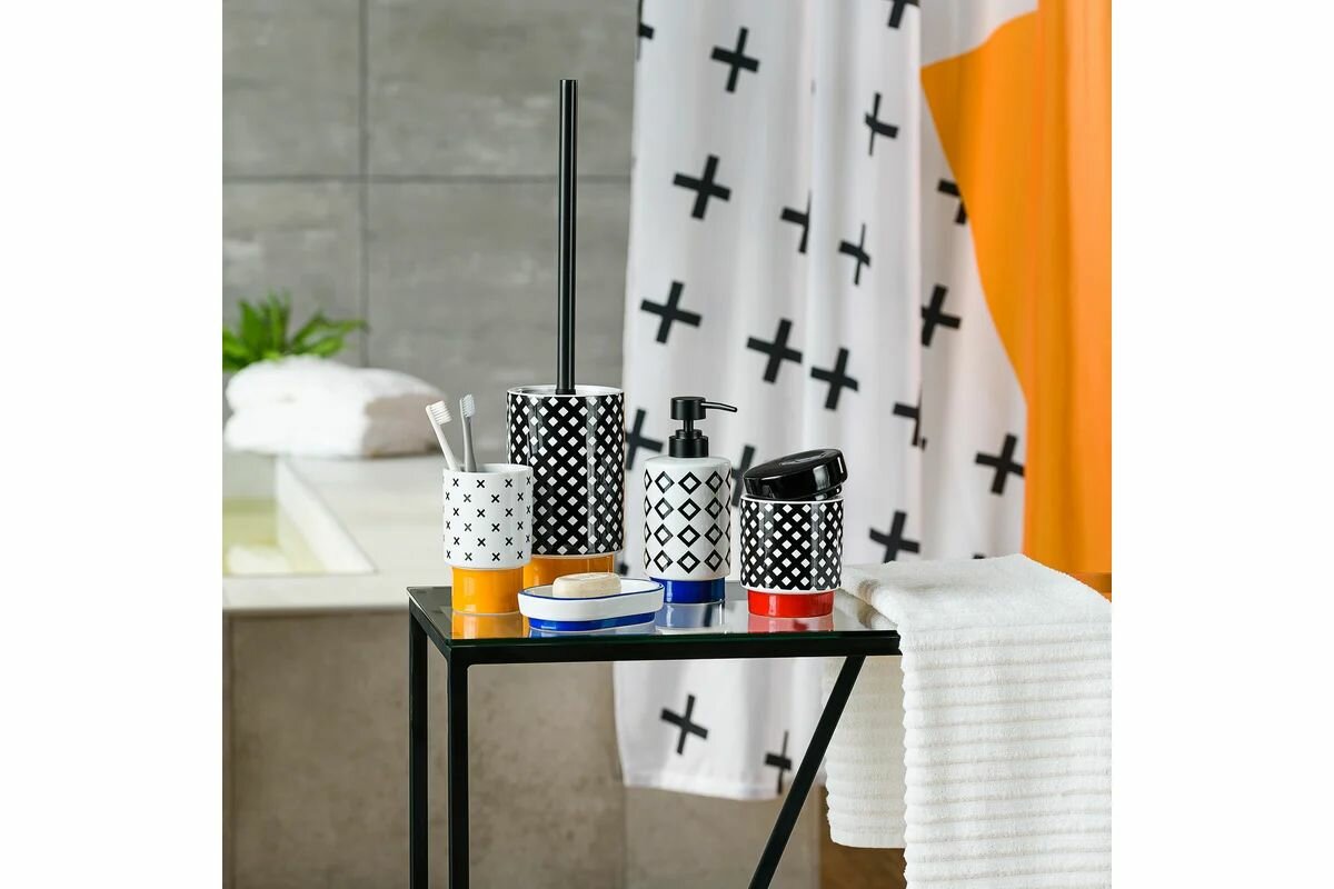 Сочетание синего и белого цвета, а также форма изделия являются отличным дополнением к другим аксессуарам из коллекции Memphis: шторам для ванной, коврикам и дозаторам.