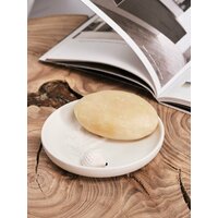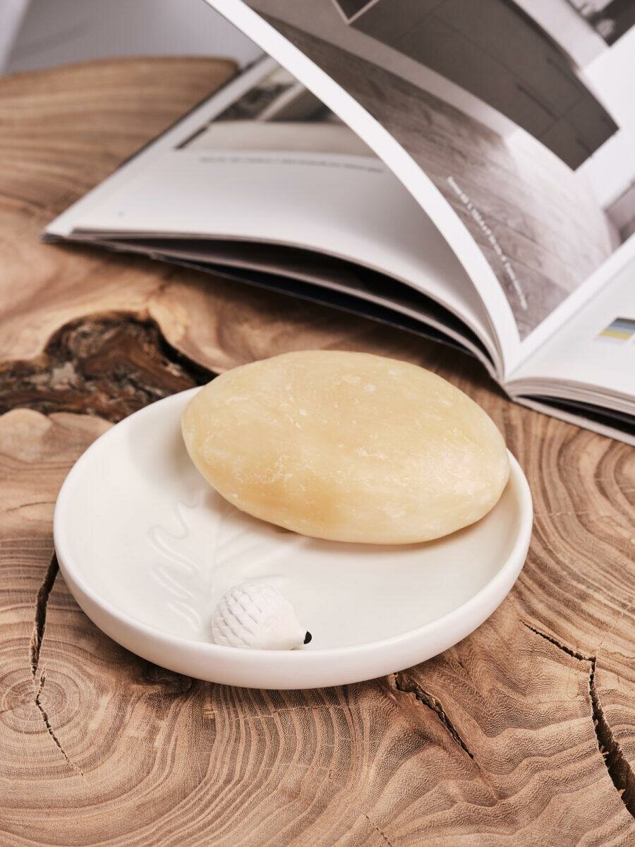 Мыльница для ванной Shelest на столешницу или раковину. Имеет круглую форму с объемным рисунком в виде листьев и фигуркой ежика. Бортики по периметру мыльницы предотвращают выскальзывание мыла. Является частью коллекции Shelest. Оформите интерьер ванной серией в молочной цветовой гамме с природными мотивами. Размеры: диаметр: 12 см; высота: 2 см. Материал: керамика.