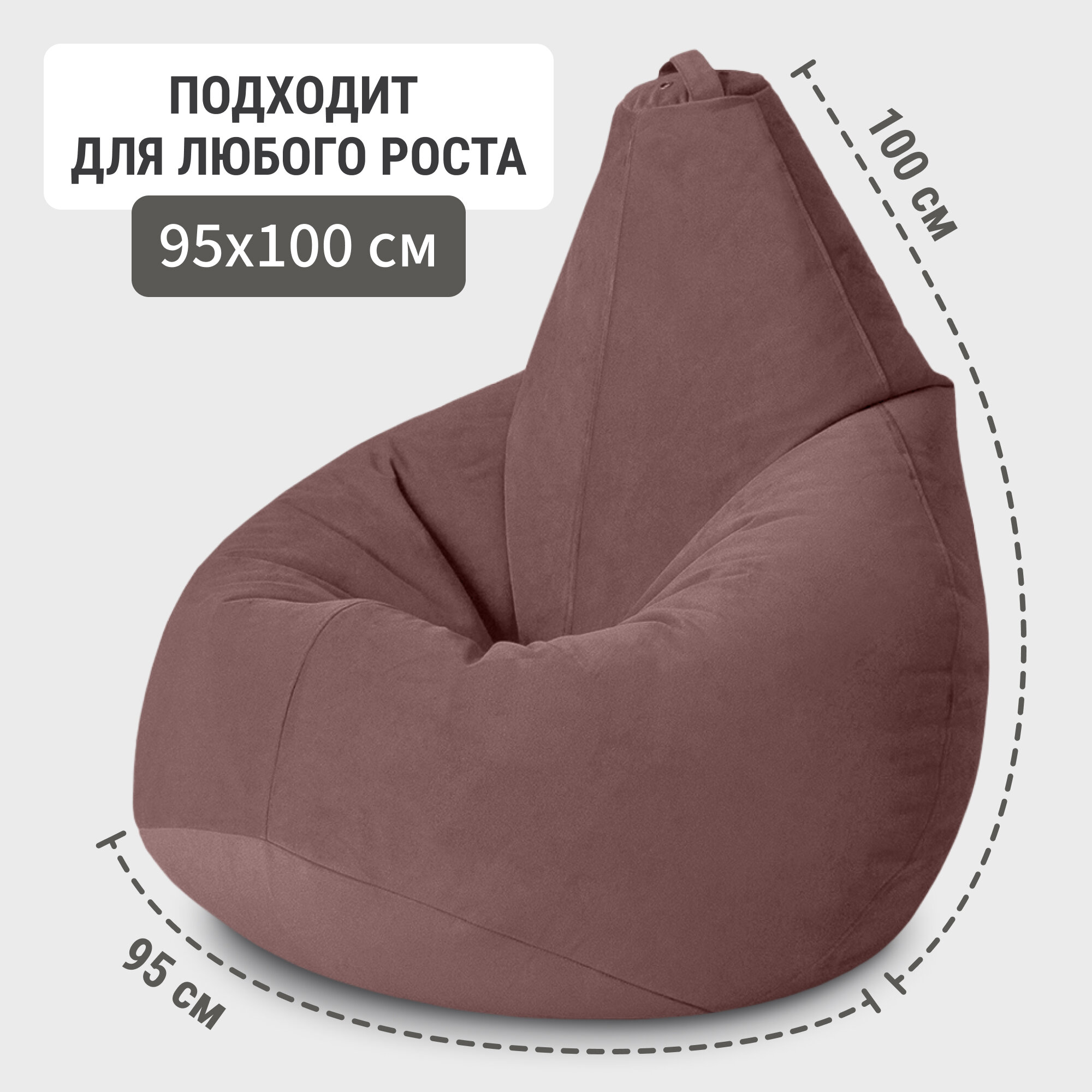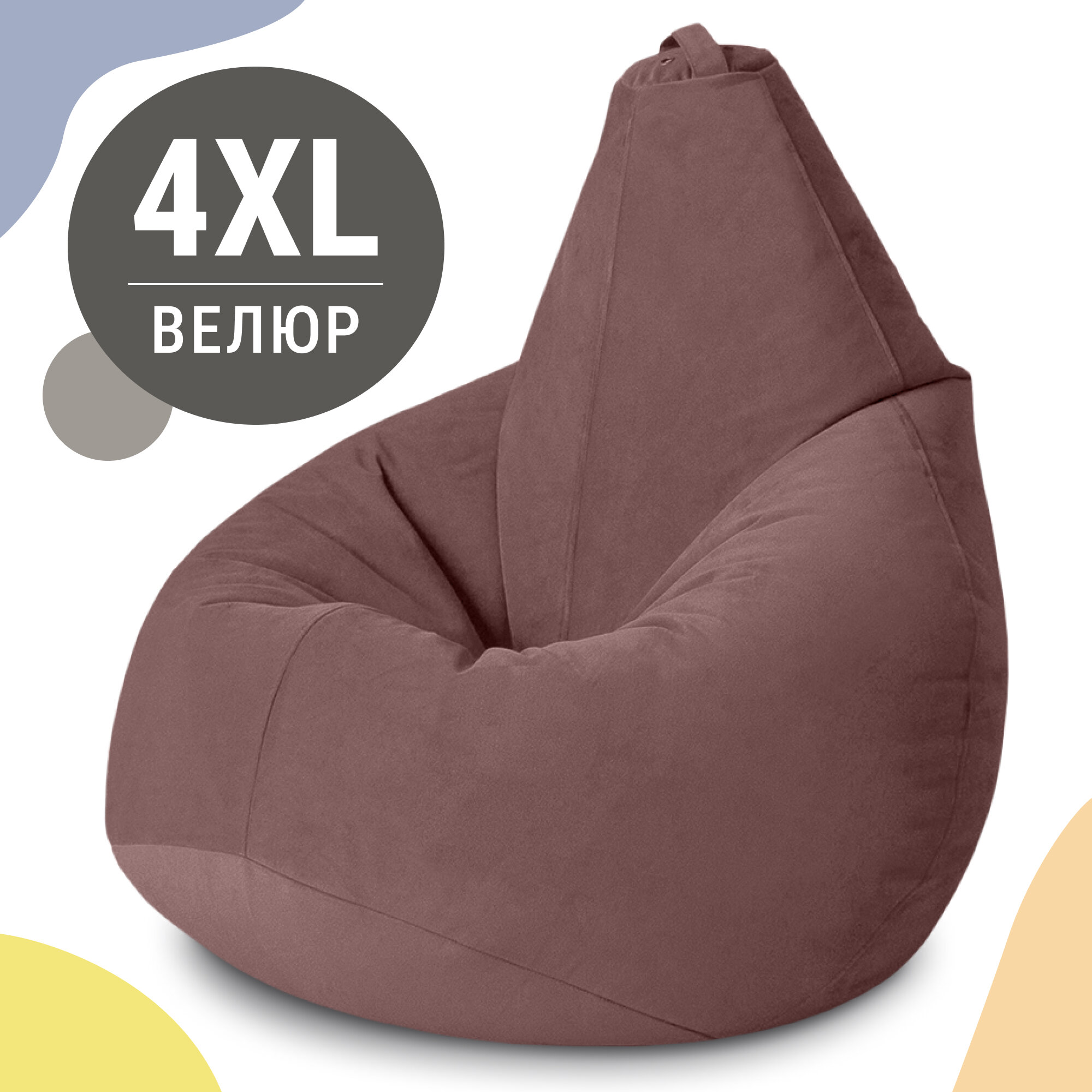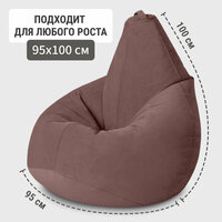 Кресло мешок груша XXXXL из бархатистого мебельного велюра. Ткань отличается мягкостью и износоустойчивостью. Размер XXXXL (140х100 см) универсален и подойдет людям любого роста. Кресло-мешок для квартиры, балкона, дачной веранды, для взрослых и детей. Пуф сохраняет форму максимально долго, не скрипит и не шуршит при использовании. Наполнитель: гранулы диаметром всего 1-3 мм. Чехол можно стирать в режиме деликатной стирки при температуре 30°. Гарантия - 1 год. Выдерживает нагрузку до 150 кг. Производство MyPuff – российская фабрика бескаркасной мебели.