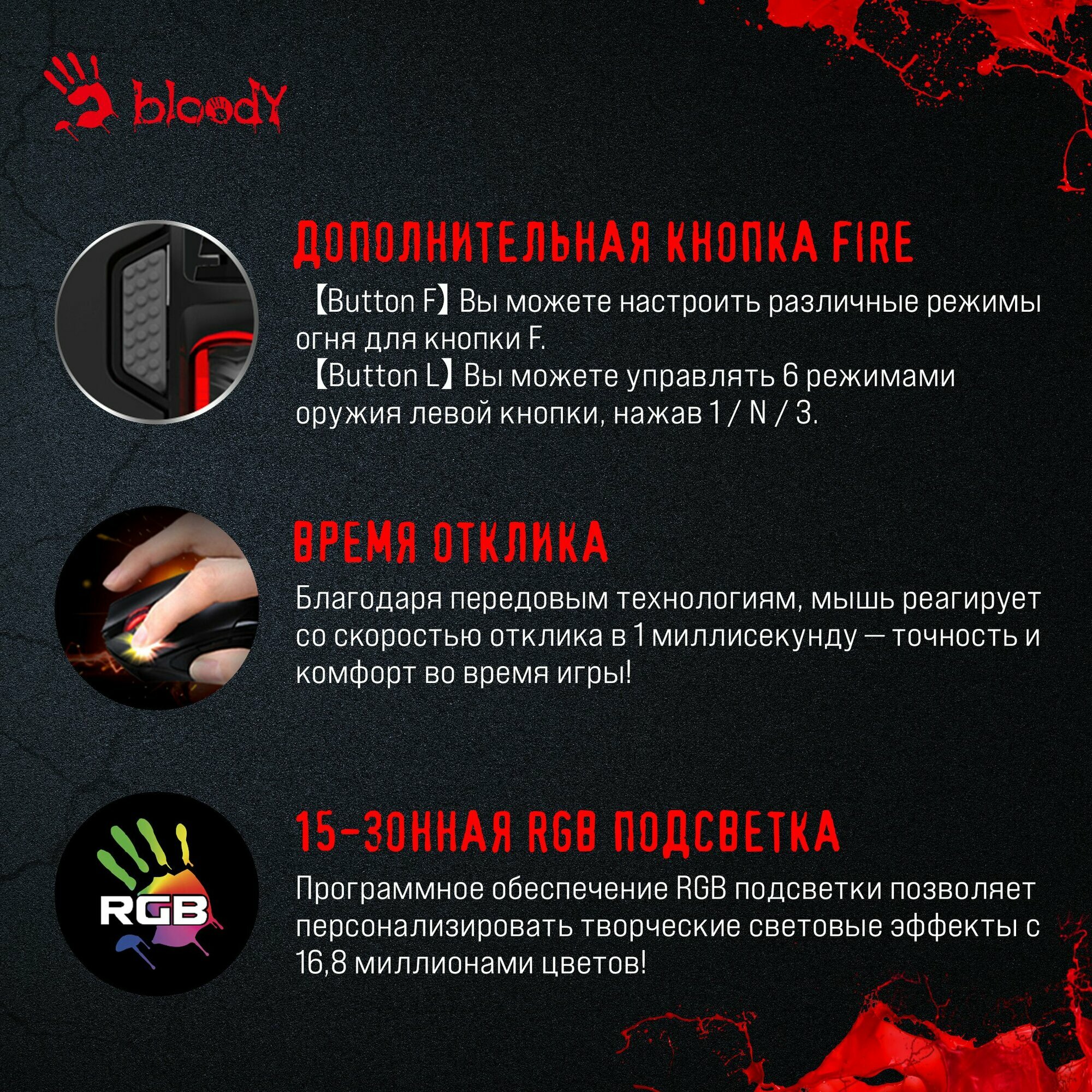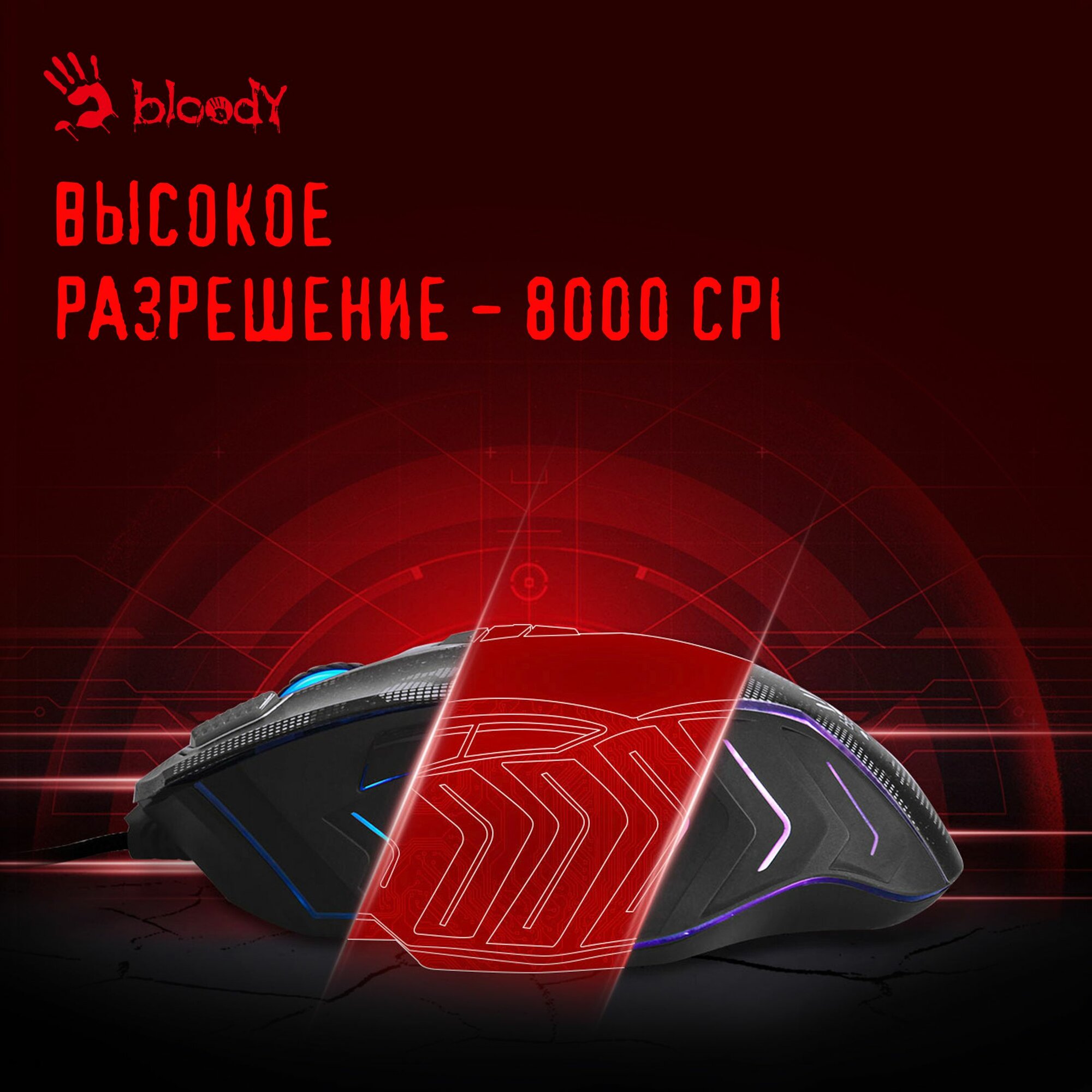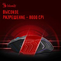 Купить Мышь A4Tech Bloody J95s рисунок, оптическая, разрешение сенсора 8000dpi, проводная, длина провода 1.8м, кнопок: 9 с доставкой по всей России.