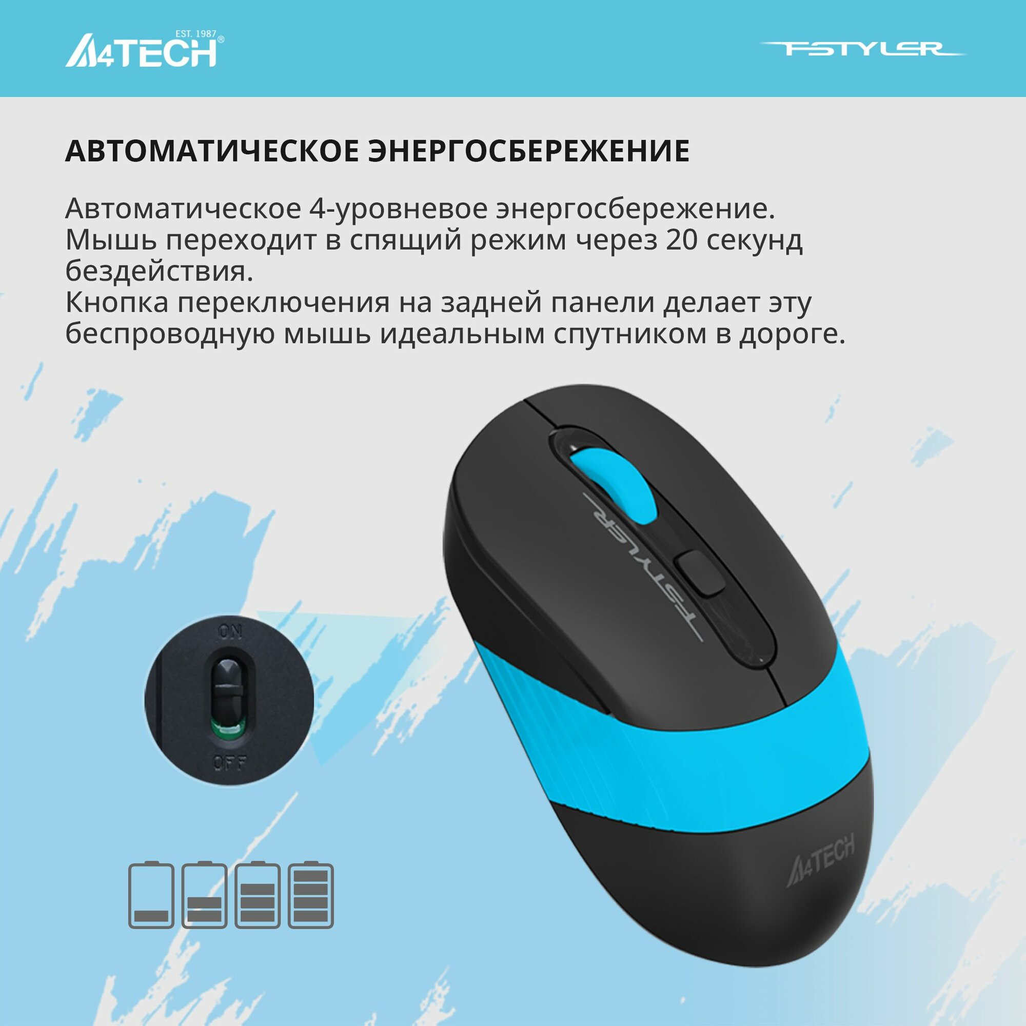 Мышь A4TECH Fstyler FG10 черный/синий оптическая беспроводная