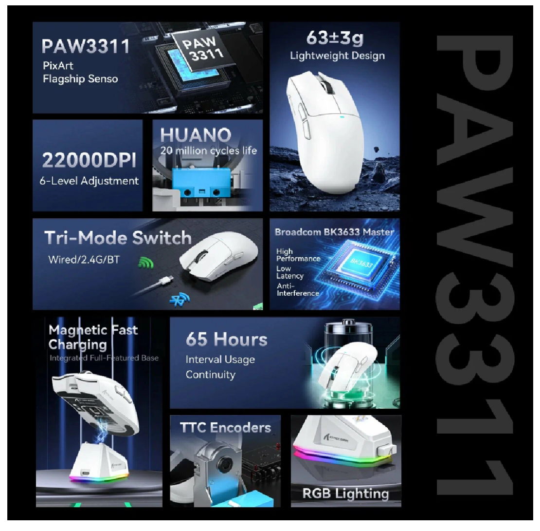 | Дополнительная информация | Зарядная док-станция, Ультралегкий, 20 миллионов кликов, Эргономичный дизайн, Широкая применимость |