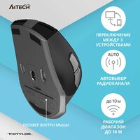 | Дополнительная информация | кол-во подключаемых устройств: 3 устройства (Bluetooth x 2, 2.4 ГГц х 1); разрешение: 1200-1600-2000-2400 DPI |