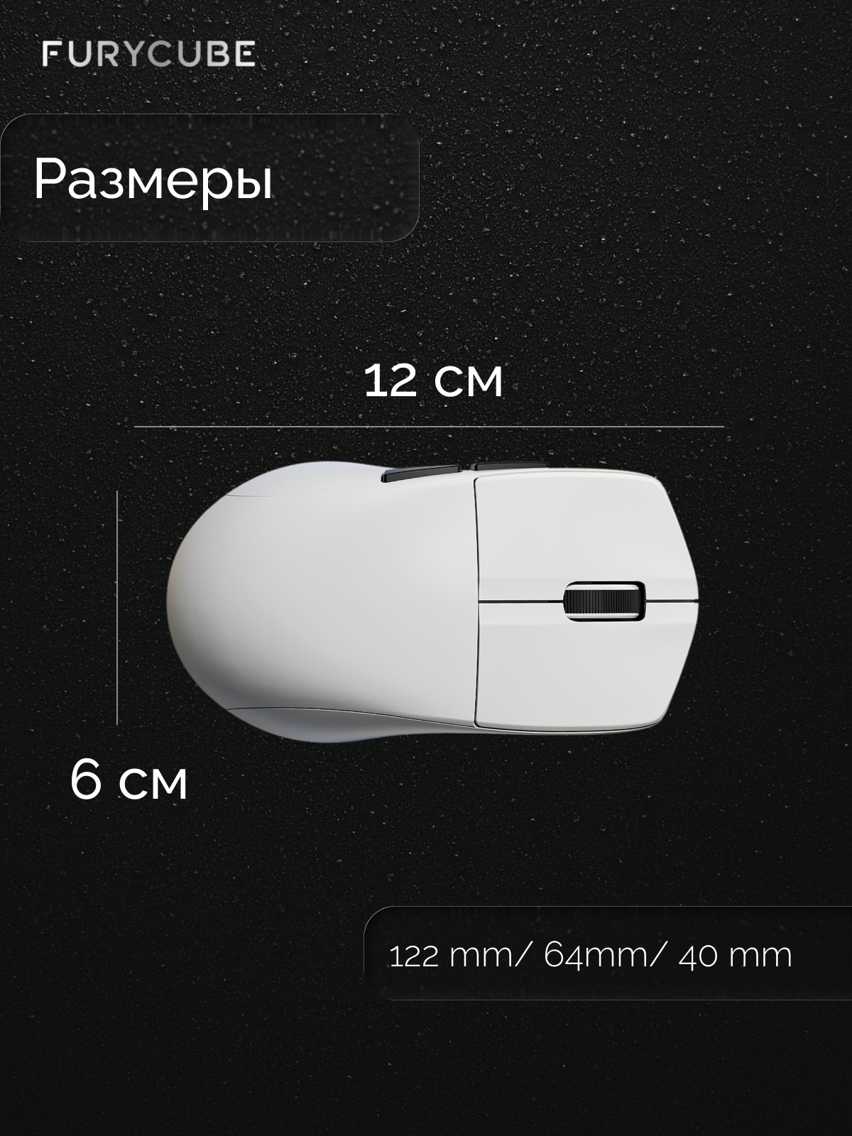 Furycube G1: Невесомая точность. Беспроводная свобода. В решающий момент матча каждое движение и каждая миллисекунда имеют значение. Вам нужен инструмент, который станет продолжением вашей руки, а не тяжелой обузой. Представляем Furycube G1 — ультра-легкую беспроводную игровую мышь, созданную для тех, кто не признает компромиссов и стремится к доминированию. Клик, который решает всё: Каждое нажатие должно быть уверенным и четким. Мы оснастили G1 микропереключателями Huano, которые ценят профессионалы за их выраженную тактильную отдачу и надежность. Этот отчетливый, контролируемый клик дает вам неоспоримое преимущество, позволяя идеально контролировать спрей в CS2 и других шутерах. Каждое ваше действие с мышью Huano будет безошибочно зарегистрировано. Точность, возведенная в абсолют: Что толку в идеальном отслеживании, если мышь сковывает движения? Furycube G1 сочетает в себе флагманский оптический сенсор с разрешением до 10000 DPI и феноменально низкий вес. Эта легкая игровая мышь весит всего 53 грамма, практически не ощущаясь в руке. Результат — безупречная точность отслеживания каждого микродвижения и возможность совершать молниеносные флики без усталости. Свобода без компромиссов: Забудьте о мифах про задержки беспроводных мышей. Скоростной радиоканал 2.4 ГГц с откликом 1 мс обеспечивает стабильность и скорость, не уступающие проводу. Для максимальной универсальности предусмотрен режим Bluetooth 5.2 для подключения к ноутбукам, а также проводной режим через сверхгибкий кабель-паракорд, позволяющий играть во время зарядки аккумулятора, которого хватает до 65 часов. Продумана до мелочейПобеда кроется в деталях. Крупные ножки из 100% PTFE-материала гарантируют идеально гладкое и контролируемое скольжение по любой поверхности. Энкодер колеса TTC Gold дает четкие тактильные отсечки, а фирменное ПО открывает доступ к тонкой настройке DPI, частоты опроса, высоты отрыва (LOD) и записи макросов. Технические характеристики: