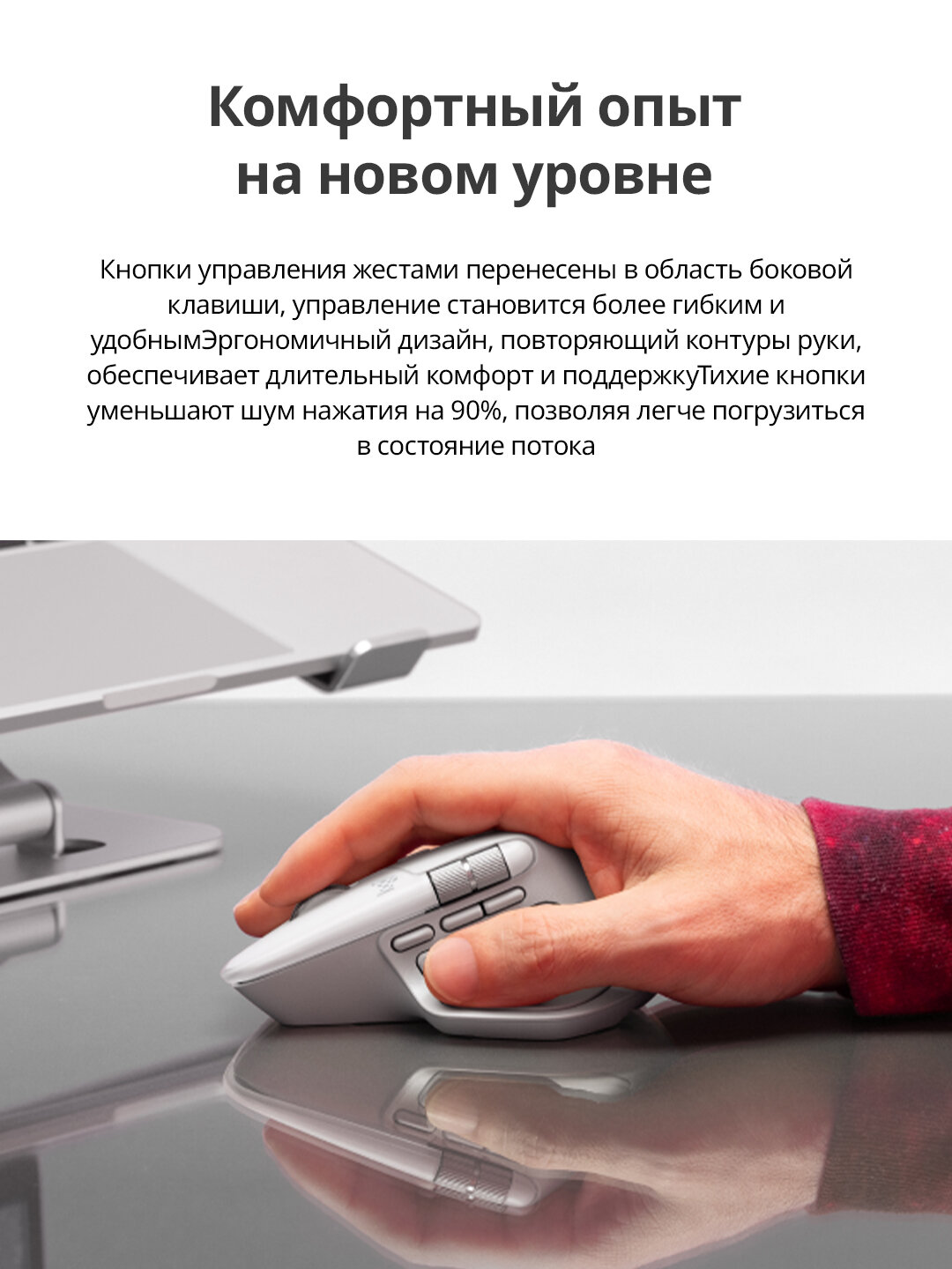 | Дополнительная информация | мышь беспроводная, logitech mx master, эргономичная мышь, logitech mx master 4, mx master 4, мышь для работы, logitech mx master 4 характеристики, беспроводная мышь с горизонтальным скроллом, мышь для дизайнеров, мышь с колесом hyper-fast scroll, эргономичная мышь для правой руки, мышь в подарок, подарок для дизайнера |