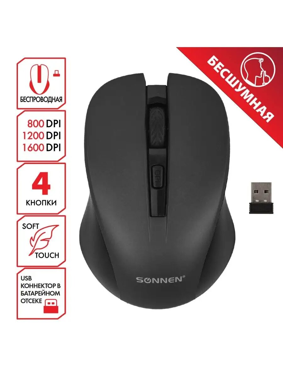 Купить Мышь беспроводная SONNEN «V18», с бесшумным клик, 3 режима DPI, 4 клавиши, чёрная с доставкой по всей России. Мышь беспроводная SONNEN «V18», с бесшумным клик, 3 режима DPI, 4 клавиши, чёрная: сравнение цен, характеристики, фото, актуальное наличие и цены.