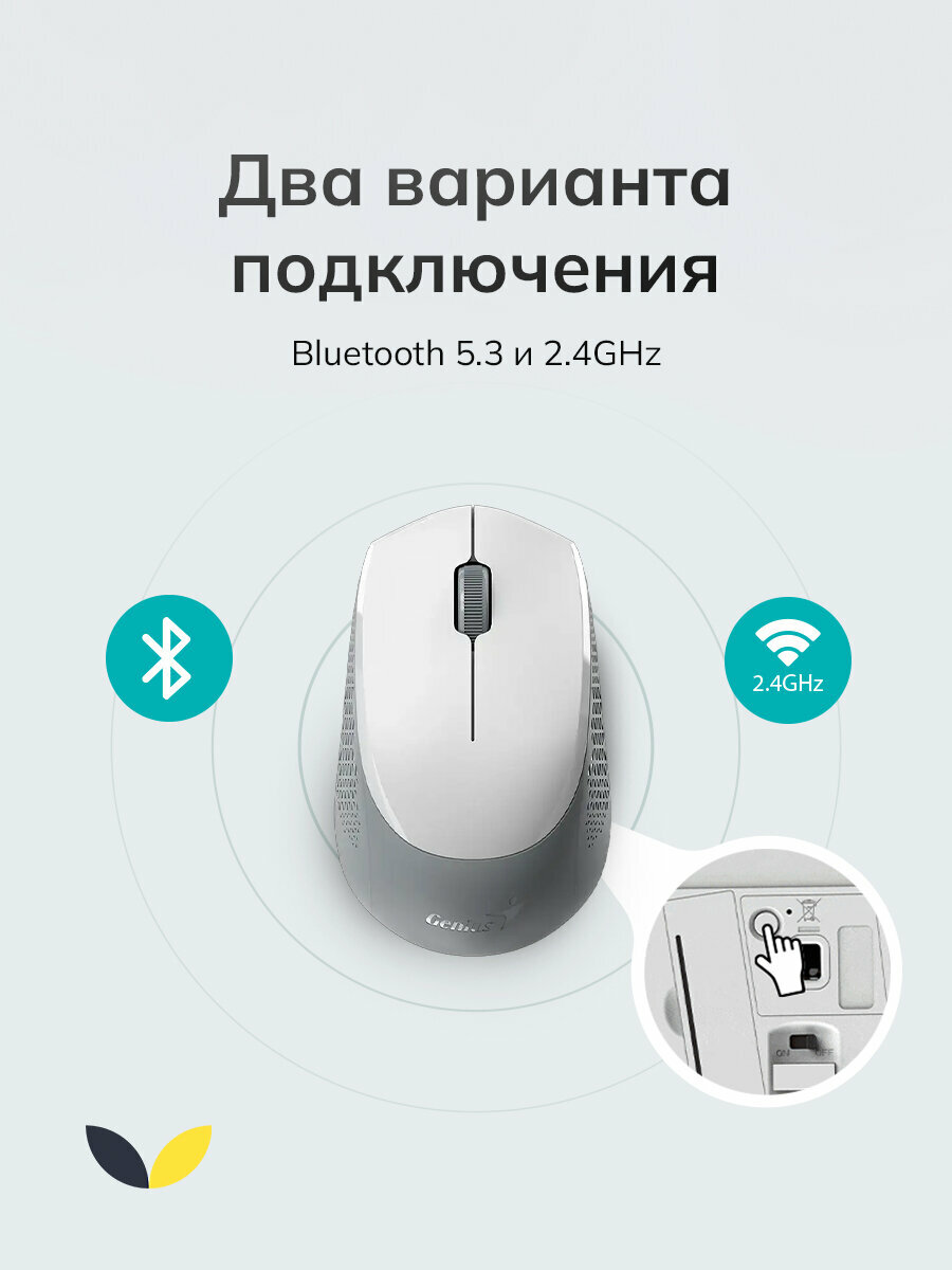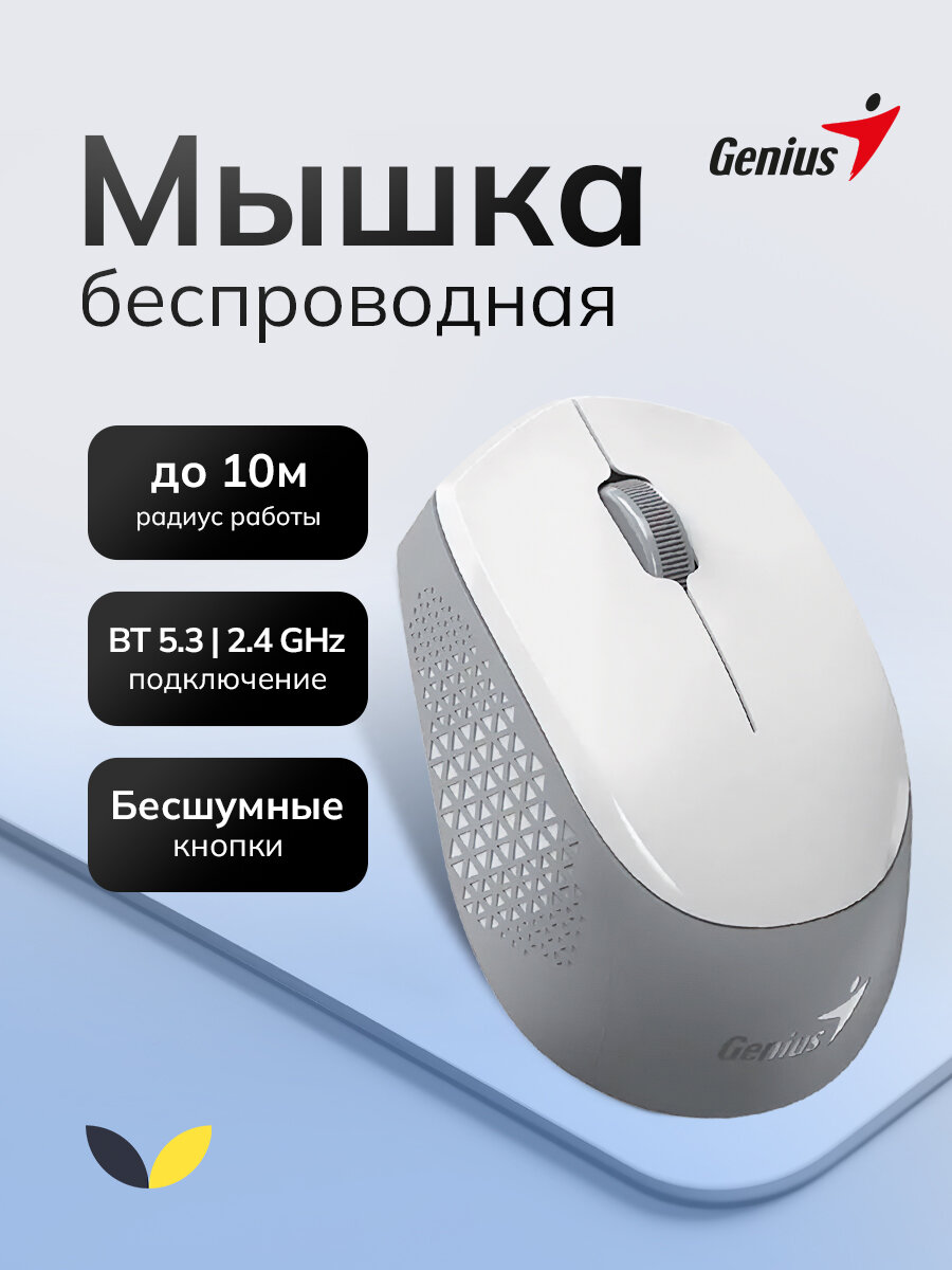 Мышь Genius NX-8000S, беспроводная, 1200dpi, подключение Bluetooth/радиоканал, белая: сравнение цен, характеристики, фото, актуальное наличие и цены.
