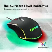 Игровая компьютерная мышь эргономичной формы. Регулируемая динамическая RGB подсветка (кнопка выключения на нижней панели). Sft-touch покрытие корпуса. Прорезиненное колесо прокрутки. Кабель в плетеной оплетке с магнитным фильтром. Драйвер с поддержкой макросов на сайте производителя.