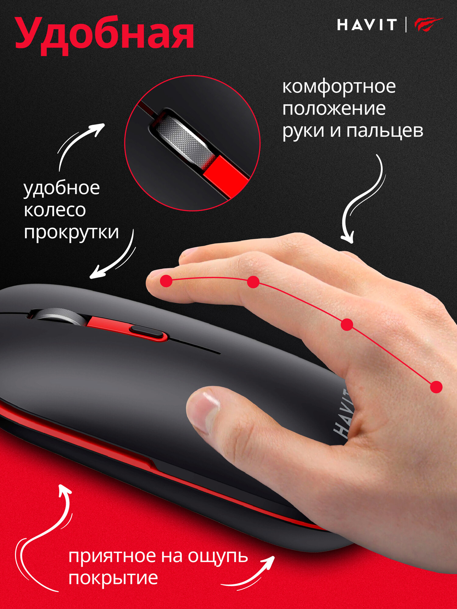 Купить Мышь Havit MS60WB Black беспроводная аккумуляторная 2.4+Bluetooth с доставкой по всей России.