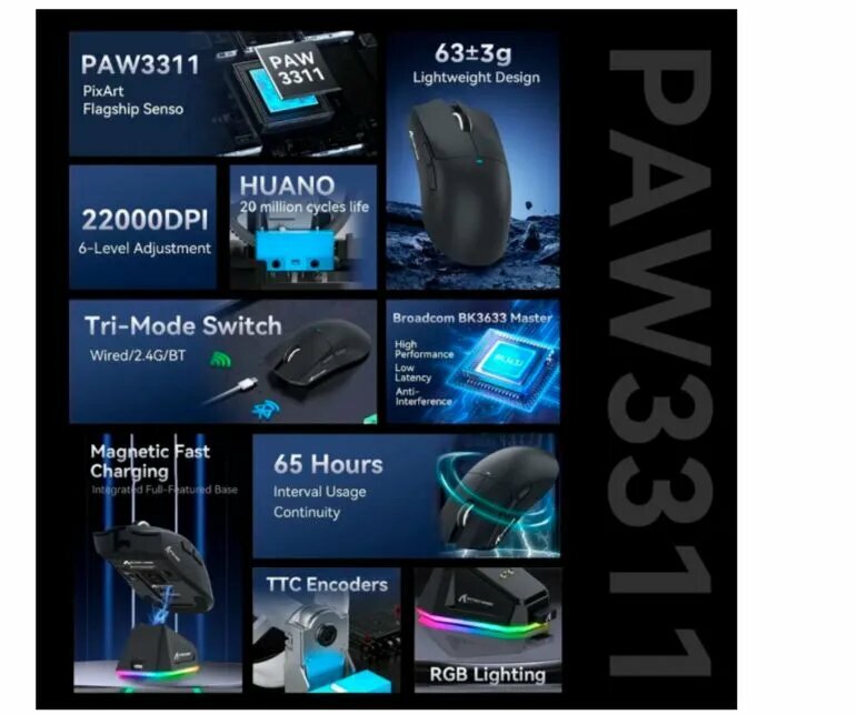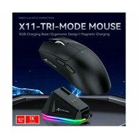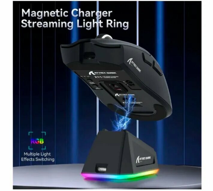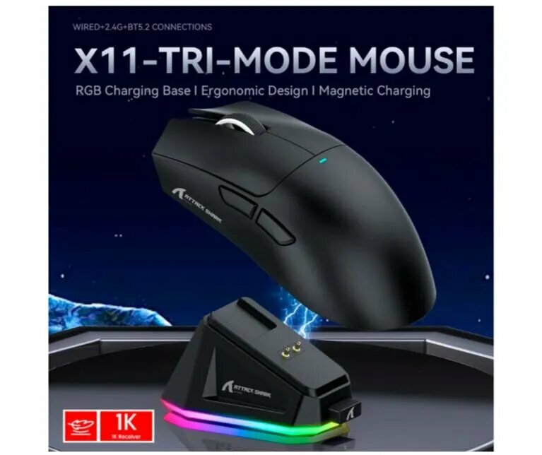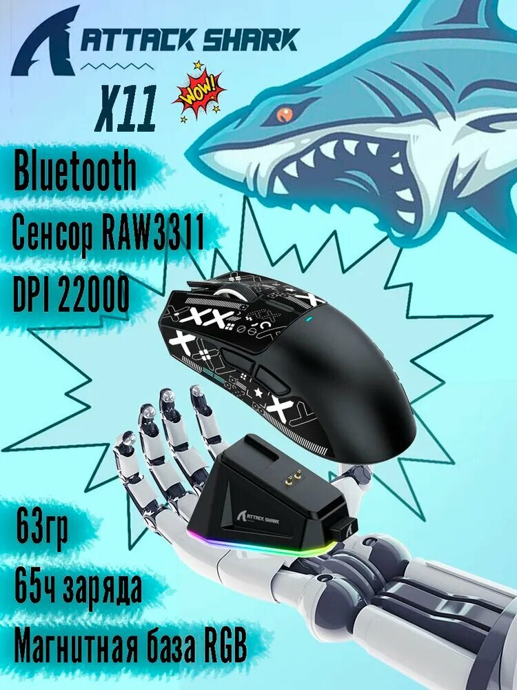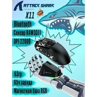 Купить Мышь игровая Attack Shark X11 док-станция, беспроводная, Bluetooth + 2.4Ghz USB, 22000 Dpi, черный с доставкой по всей России.