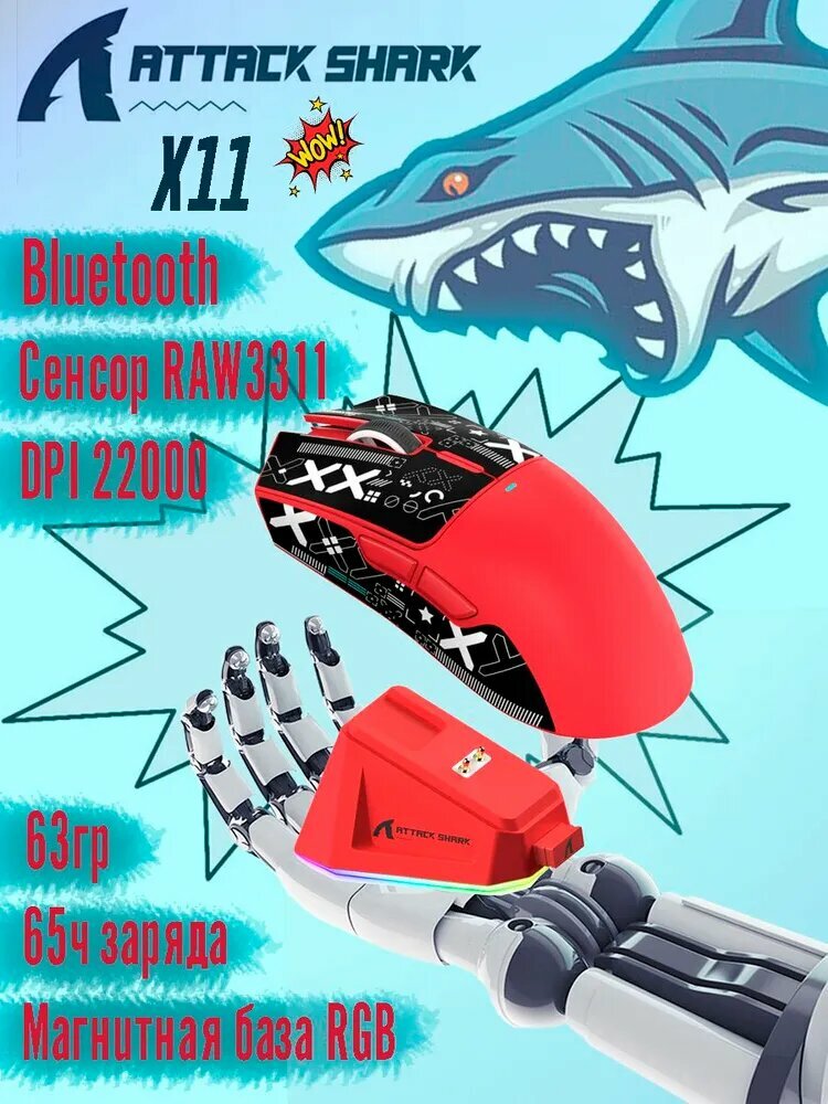 Мышь игровая Attack Shark X11 док-станция, беспроводная, Bluetooth + 2.4Ghz USB, 22000 Dpi, красный: сравнение цен, характеристики, фото, актуальное наличие и цены.
