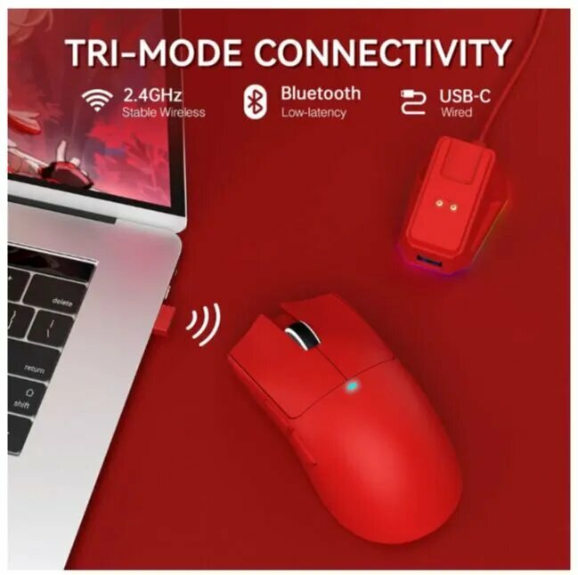 Мышь игровая Attack Shark X11 док-станция, беспроводная, Bluetooth + 2.4Ghz USB, 22000 Dpi, красный