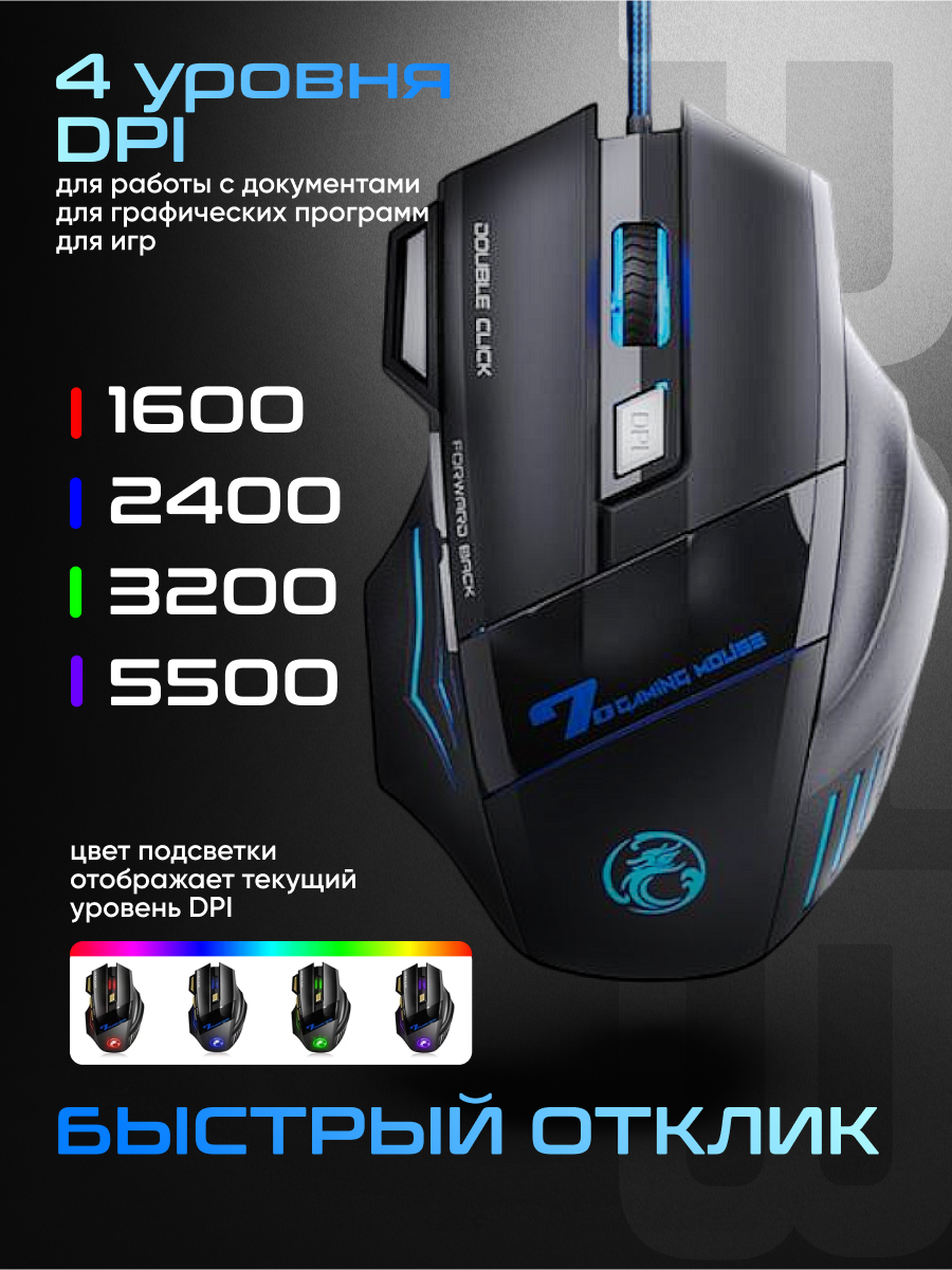 ✅Компьютерная проводная игровая мышь имеет 4 переключателя DPI (1600/2400/3200/5500) свободно изменяют скорость мыши;