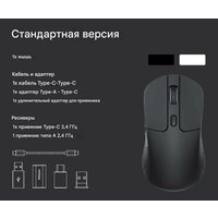 | Комплектация | 1 х Мышь 1 х Кабель USB Type-C - USB Type-C в гибкой оплетке 1 х Переходник Type-C в Type-A 1 х Type-C 2.4 GHz Приемник 1 х Type-A 2.4 GHz Приемник 1 х Руководство по эксплуатации |