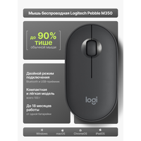 Мышь Logitech Pebble M350, беспроводная, бесшумная, оптическая, графит